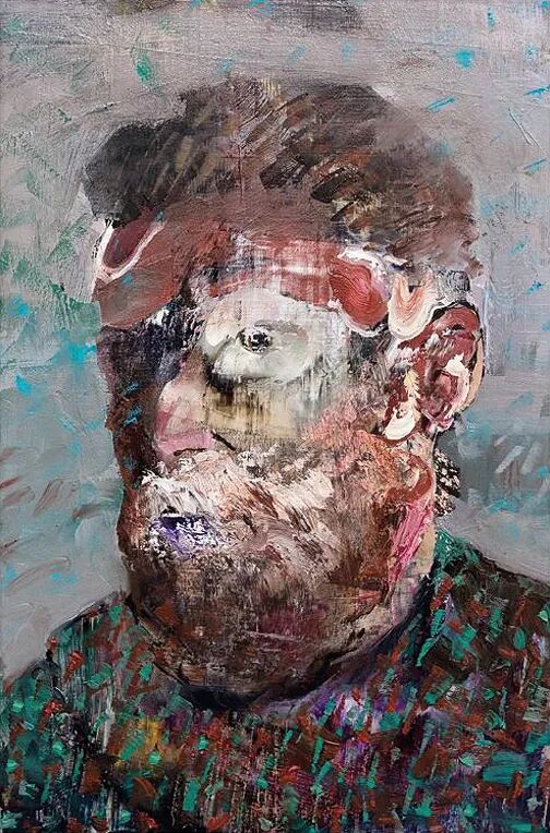 面部形象模糊的這幅畫,揭示了少年格尼到中年格尼的創作路。梵高是格尼的精神導師。培根與李希特,則無疑影響了格尼的技法。不同時空的幾位藝術大師,彷彿在格尼的畫布上相互衝擊對話。格尼從中汲取養分,開創出自身的獨特藝術語言。這幅以梵高生涯晚年形象創作的自畫像,正是格尼與藝術史對話,投射自身到當代世界的重要關鍵作品。從 2016 年開始創作,到 2018 年收筆的格尼自畫像,無疑是他與梵高精神契合的完美收官之作:既是格尼的自畫像,也是梵高的肖像。