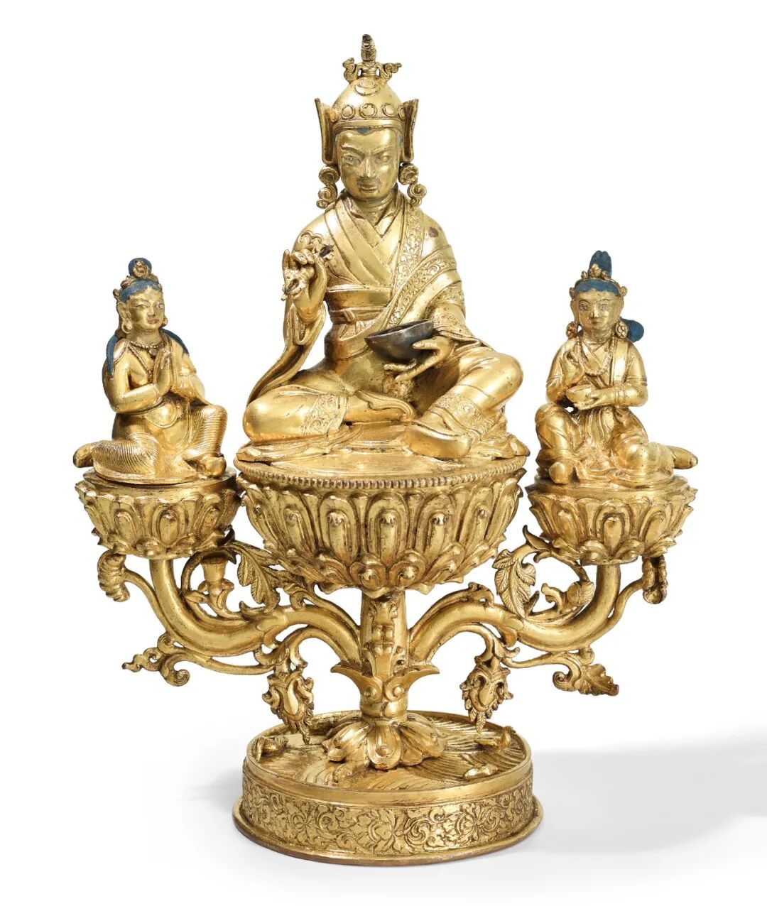 铜鎏金莲花生大士与曼达拉娃及益西措嘉像
