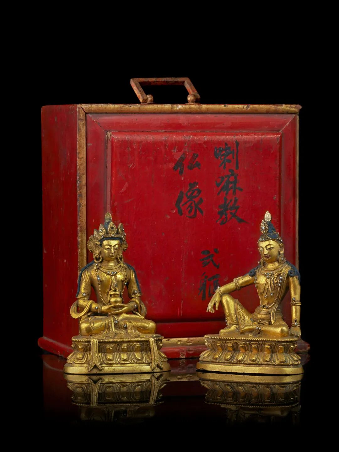 二像置于一红漆盒内,上写“喇嘛教仏像 贰躯”。