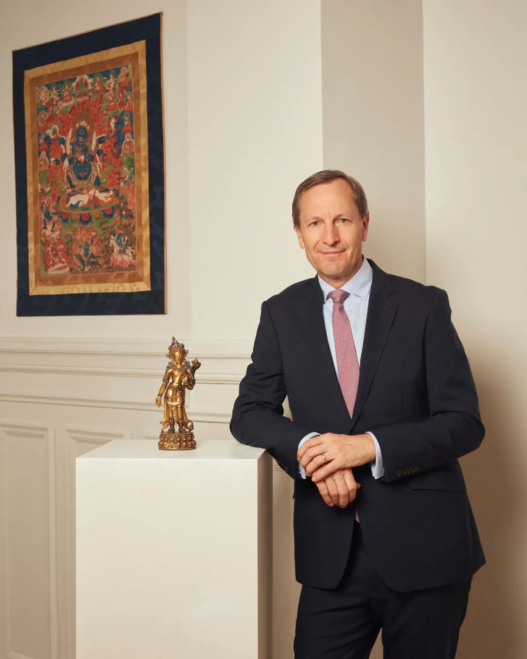 邦瀚斯印度、喜马拉雅及东南亚艺术全球主管Edward Wilkinson忆述他首次受邀参观其地下储藏室的情境:“一道朴实无华的门打开,露出简单的金属层架及大型木台。然而,当光线洒落架上,瞬间光辉灿然,令我无比震撼。数以百计、无与伦比的西藏、尼泊尔及印度造像静静立在那里数年。”
