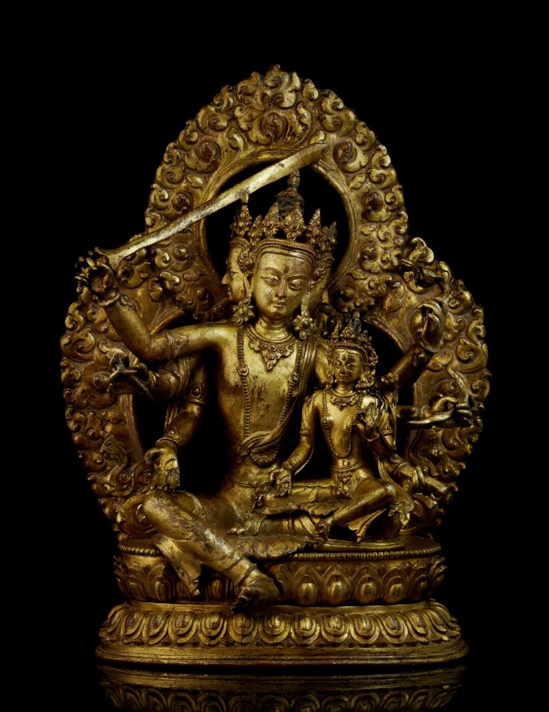 铜鎏金文殊金刚及般若波罗蜜多像