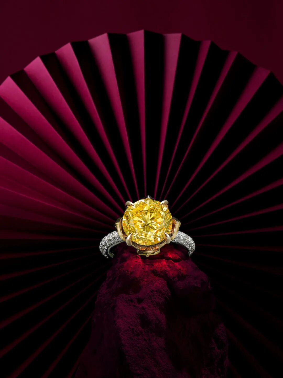4.84克拉天然艳彩黄色钻石配钻石戒指