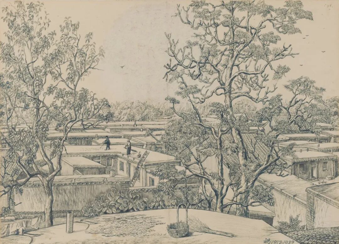 ·《李村秋实》钢笔画 38×53.5cm1972年
