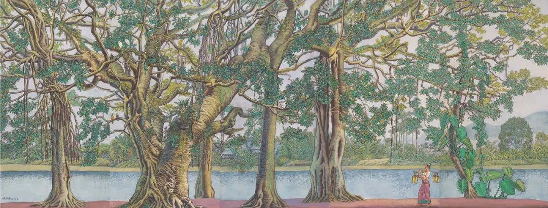 ·《罗梭江畔》 工笔重彩 112×299.5cm1983年