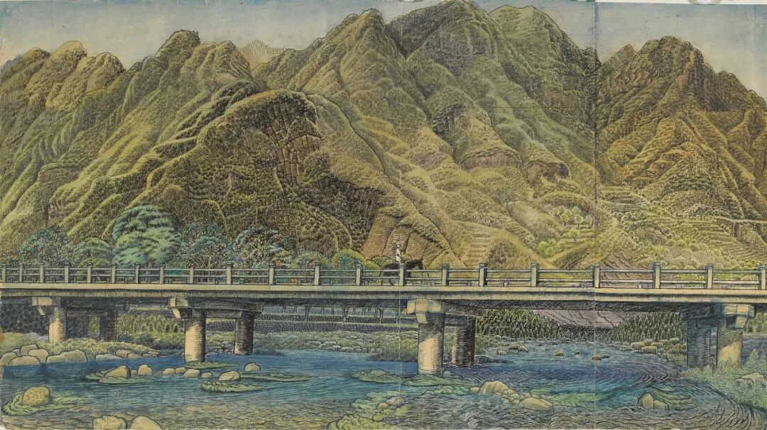 ·《十渡风光》钢笔画 39.5×70cm1974年