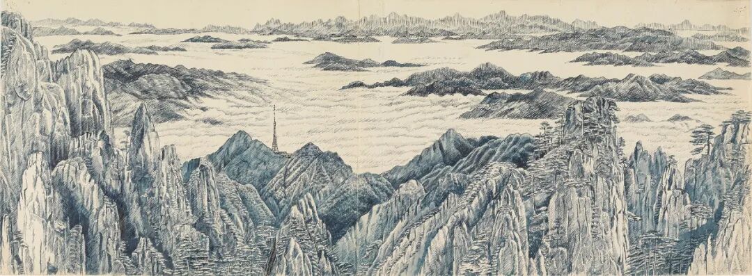 ·《黄山云海》 钢笔画 39.5×106.5cm 1973年