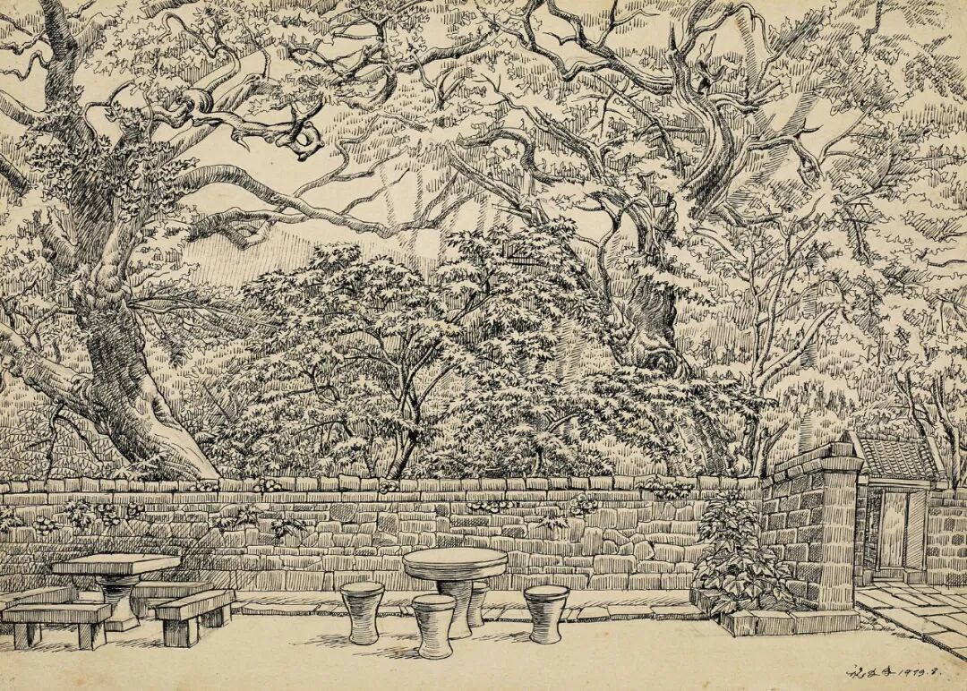 ·《崂山小景》 钢笔画 38.5×54cm20世纪70年代