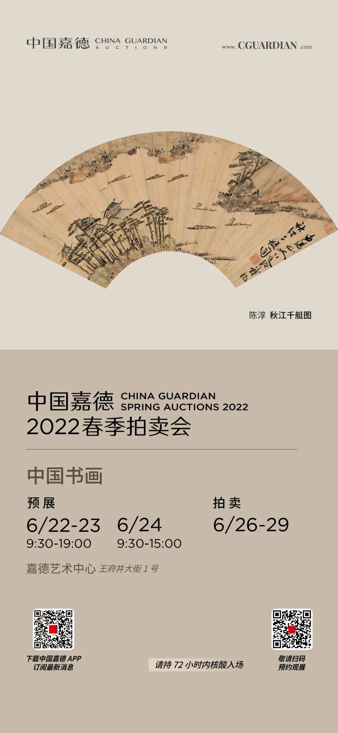 入场前须接受体温测量,出示本人“健康码”及72小时内核酸阴性证明,核实未见异常方可入场。观展及拍卖期间须全程佩戴口罩,避免聚集。
