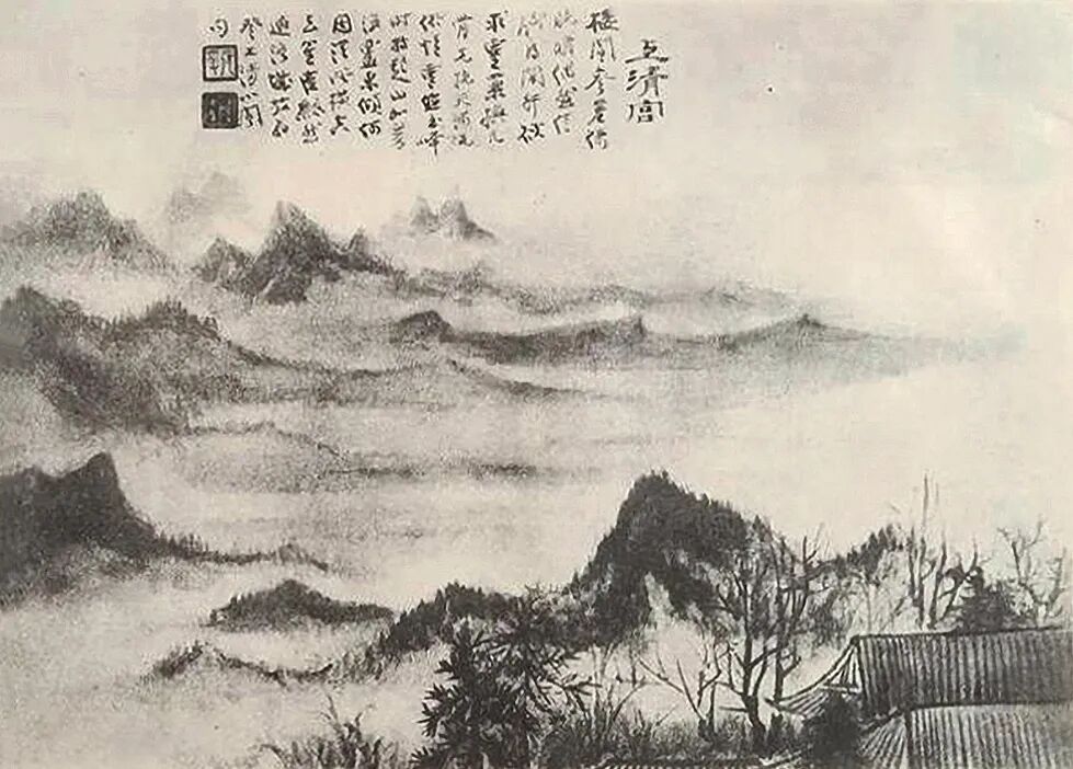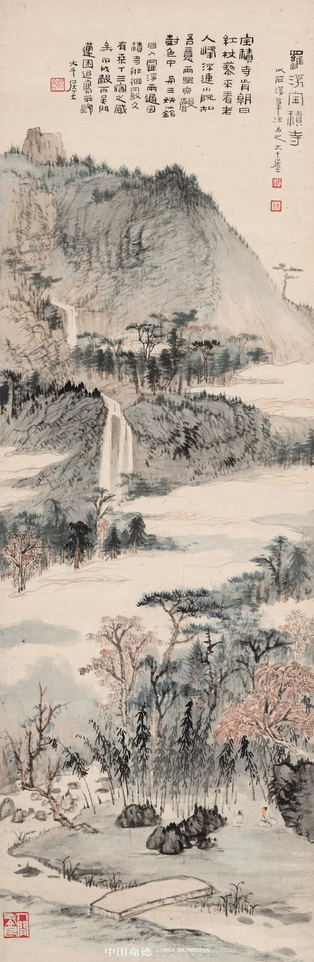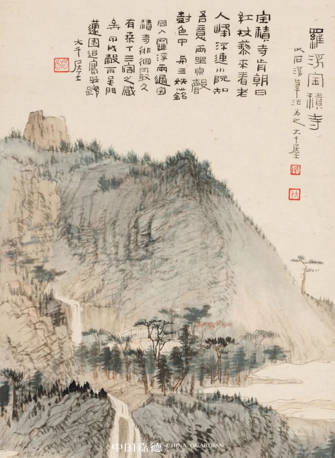 题识:(一)罗浮宝积寺。以石溪笔法为之。大千居士。