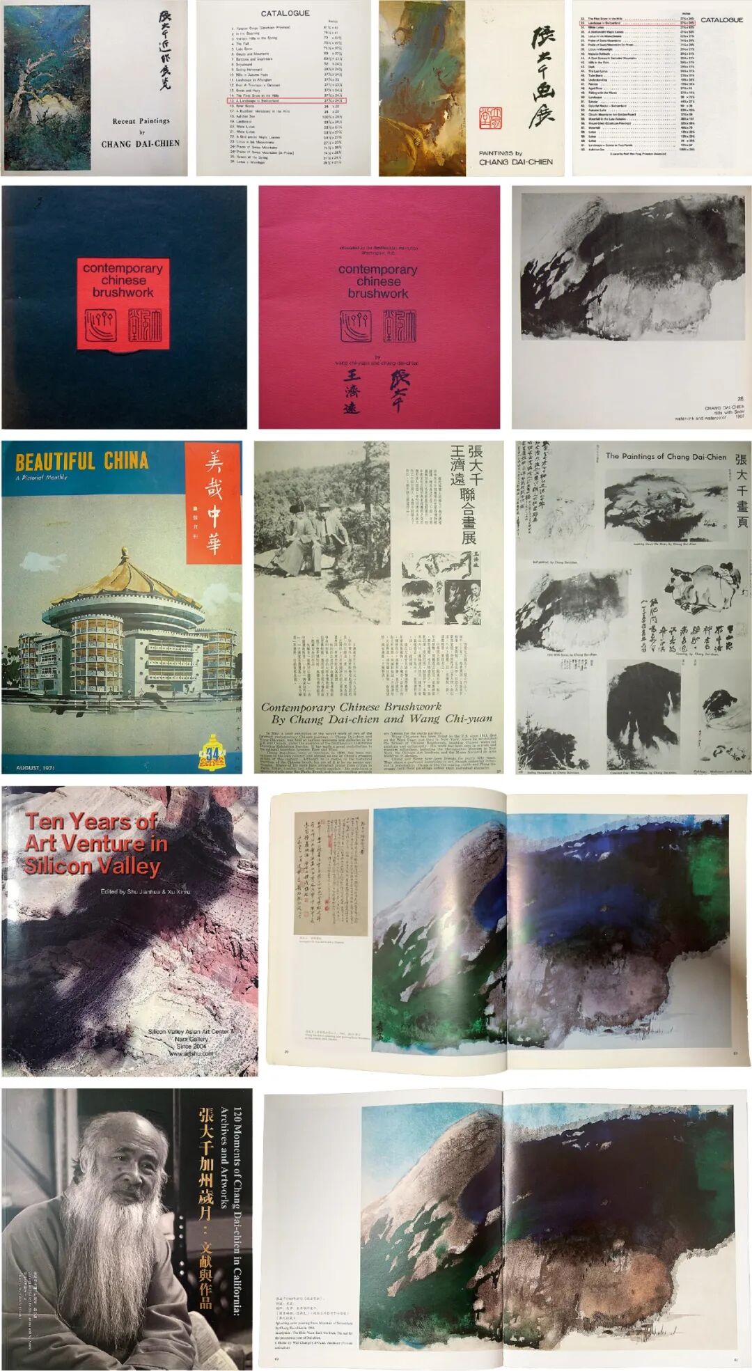 1.《张大千近作展览》,图编15,A LANDSCAPE SWITZERLAND,林语堂序,纽约FRANK CARO 画廊、台北中国艺术印刷工作室,1968年版。