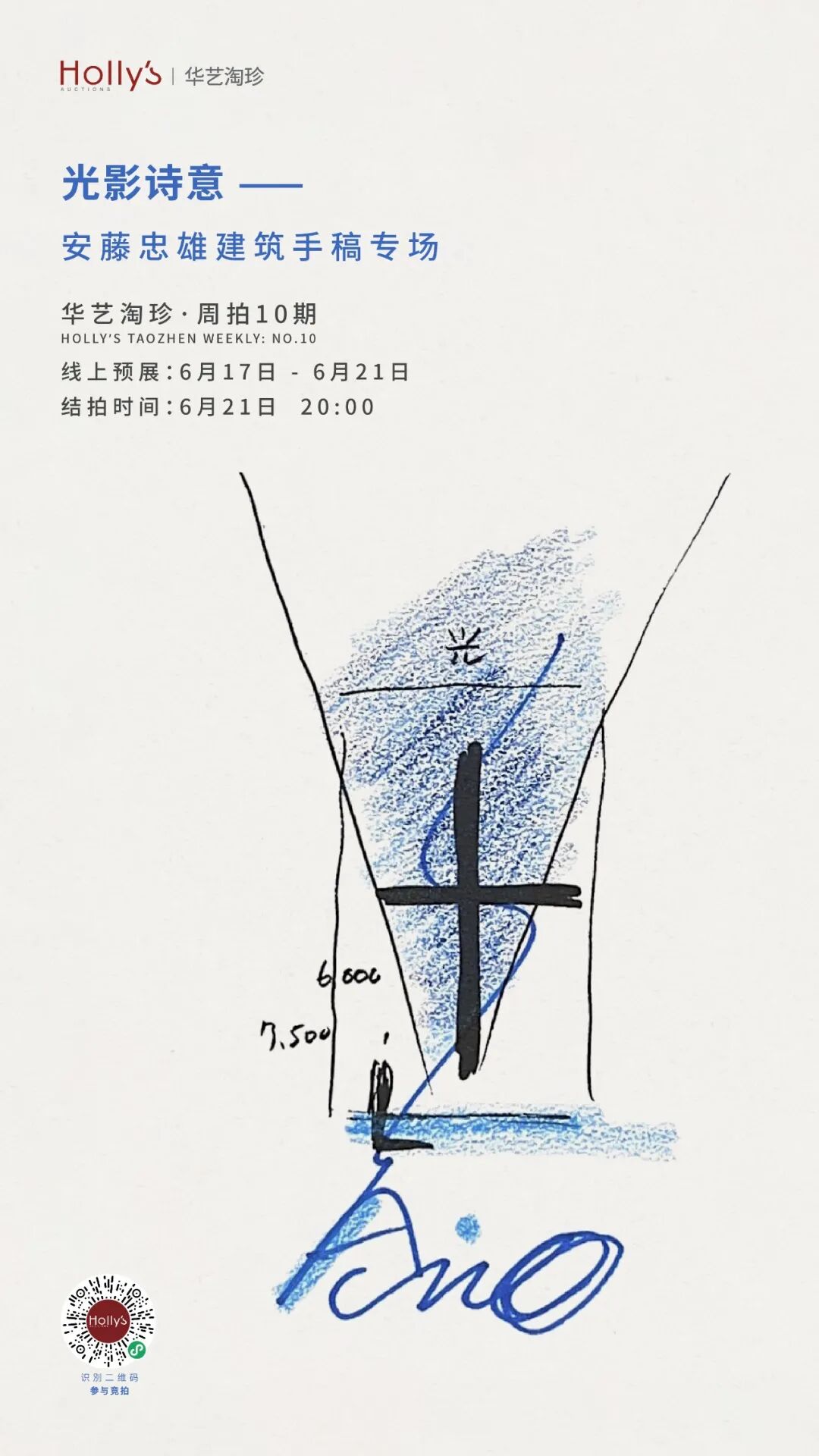 手稿作为思考过程的呈现,不仅书写了记忆空间,也拓展了想象的空间。安藤忠雄认为,建筑之所以成为建筑,有三点必不可少:场所、纯粹的几何学与自然。捕风、逐影、戏水、作诗,把建筑、人、自然融为一体,这是安藤忠雄对于建筑的执念。本次“光影诗意——安藤忠雄建筑手稿专场”,选取了安藤最著名的“教堂四部曲——光之教堂&水之教堂”系列建筑手稿,可以近距离地触摸到安藤忠雄伟大建筑创造的原点。
