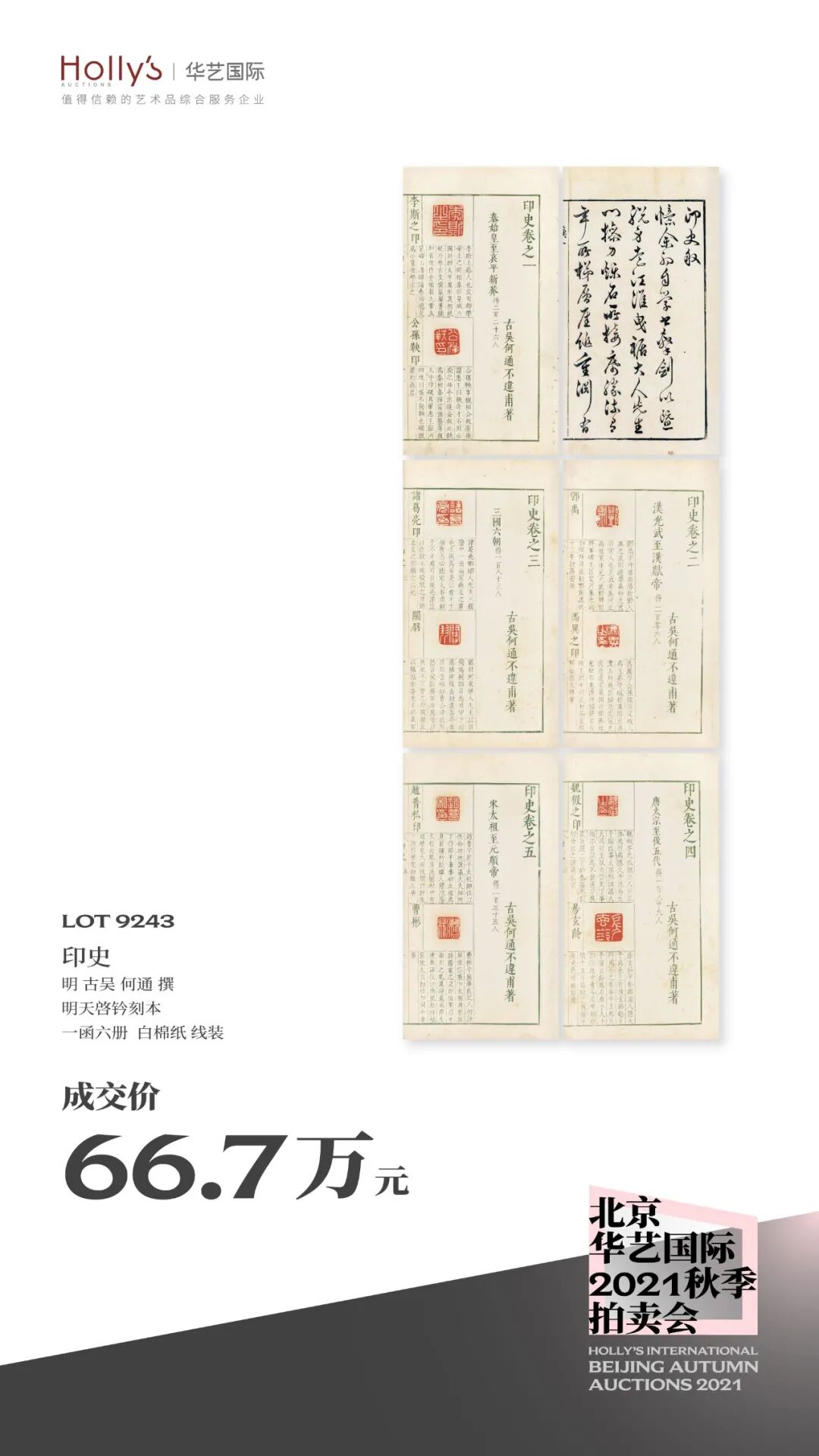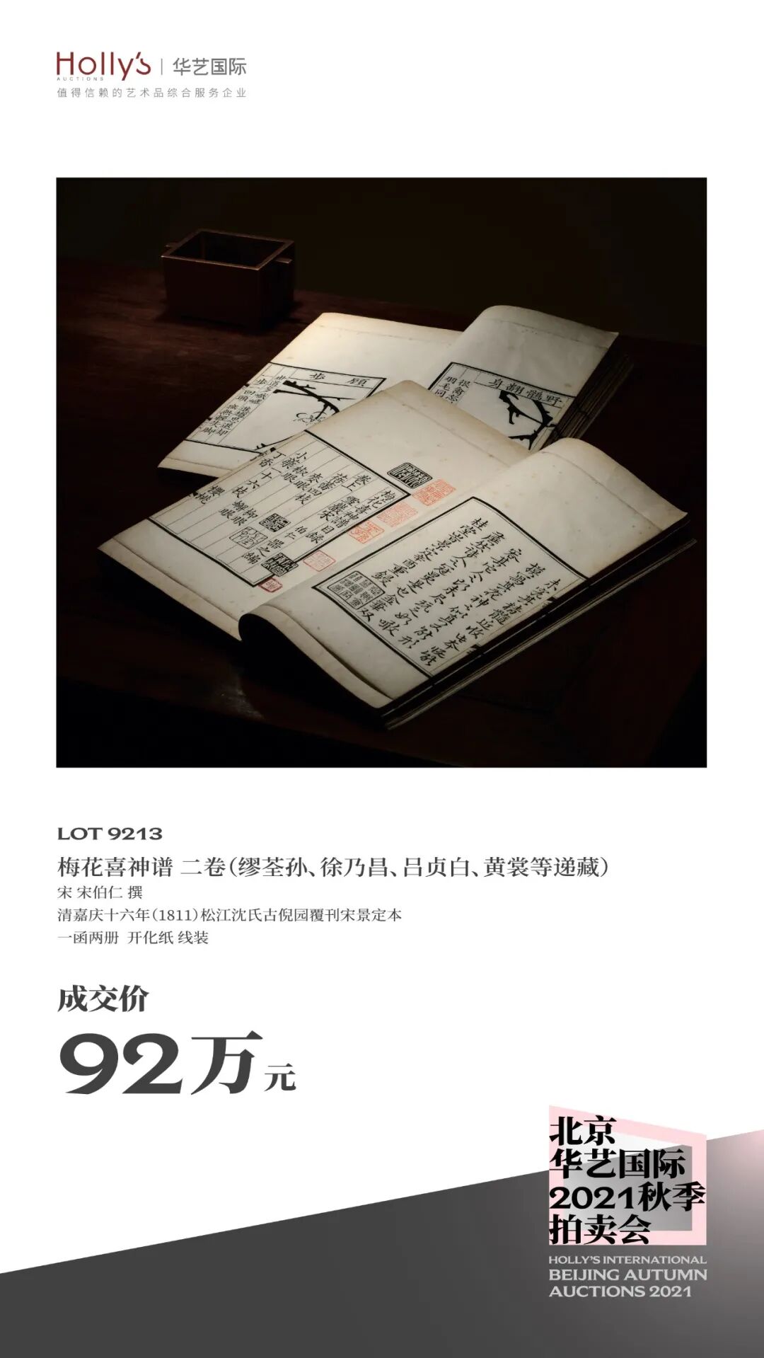 “吉羽——古籍碑帖 信札写本专场”捷报频传,延续了华艺国际北京春拍首个综合性古籍善本专场的佳绩,拍场人气旺盛,四百余精品总揽2374.29万元。