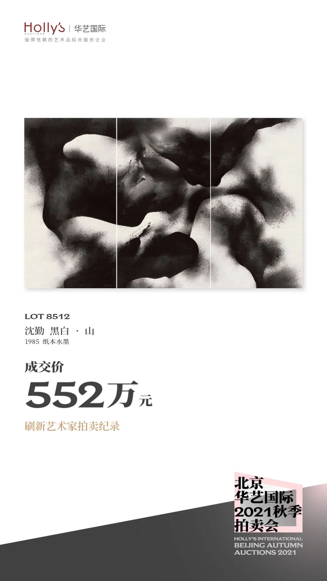 备受关注的特色专题:“70后+ 当代艺术专场” 总成交2888.8万元。其中,恩里科·巴赫《RSW》与康春慧《憼》分别以230万元、71.3万元成交,均刷新艺术家拍卖纪录。宋琨《地藏六使者—大力使者》212.75万元成交,成为艺术家成交记录Top2。“理性的先声——八〇年代作品专场”斩获1251.2万元。沈勤 《黑白 · 山》成交价552万元,刷新艺术家拍卖纪录。