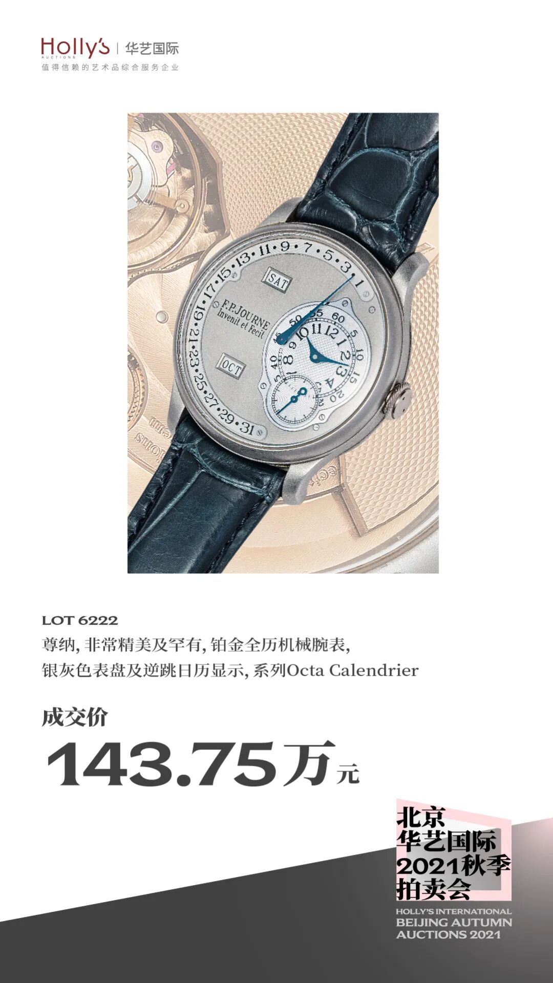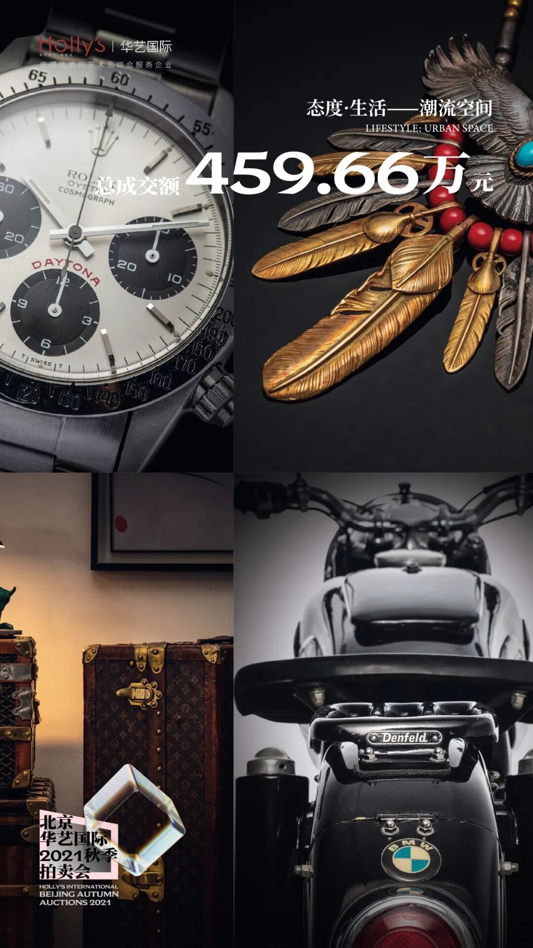 珠宝钟表尚品也交出一份不俗的成绩单,珠宝翡翠、名品手袋、珍贵腕表及潮流生活艺术四大门类魅力非凡,总成交4726.05万元。其中“瑰丽——珠宝翡翠及名品手袋”成交2019.63万元;“时间——珍贵名表”成交2246.76万元;“Lifestyle态度·生活——潮流空间”拍得459.66万元。