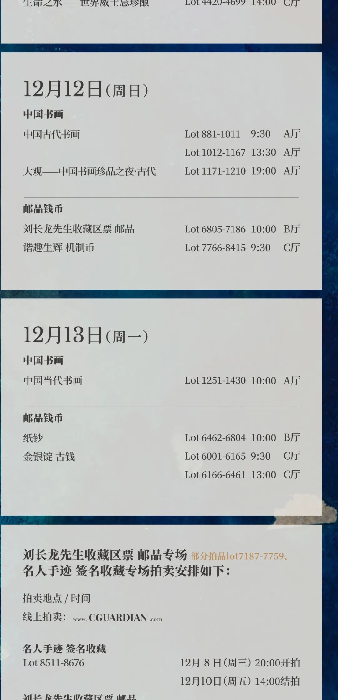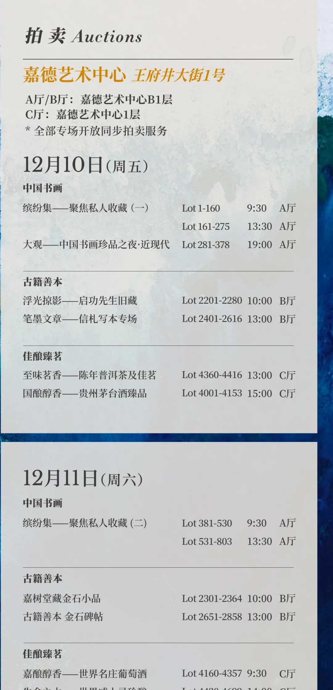 预展及拍卖日程