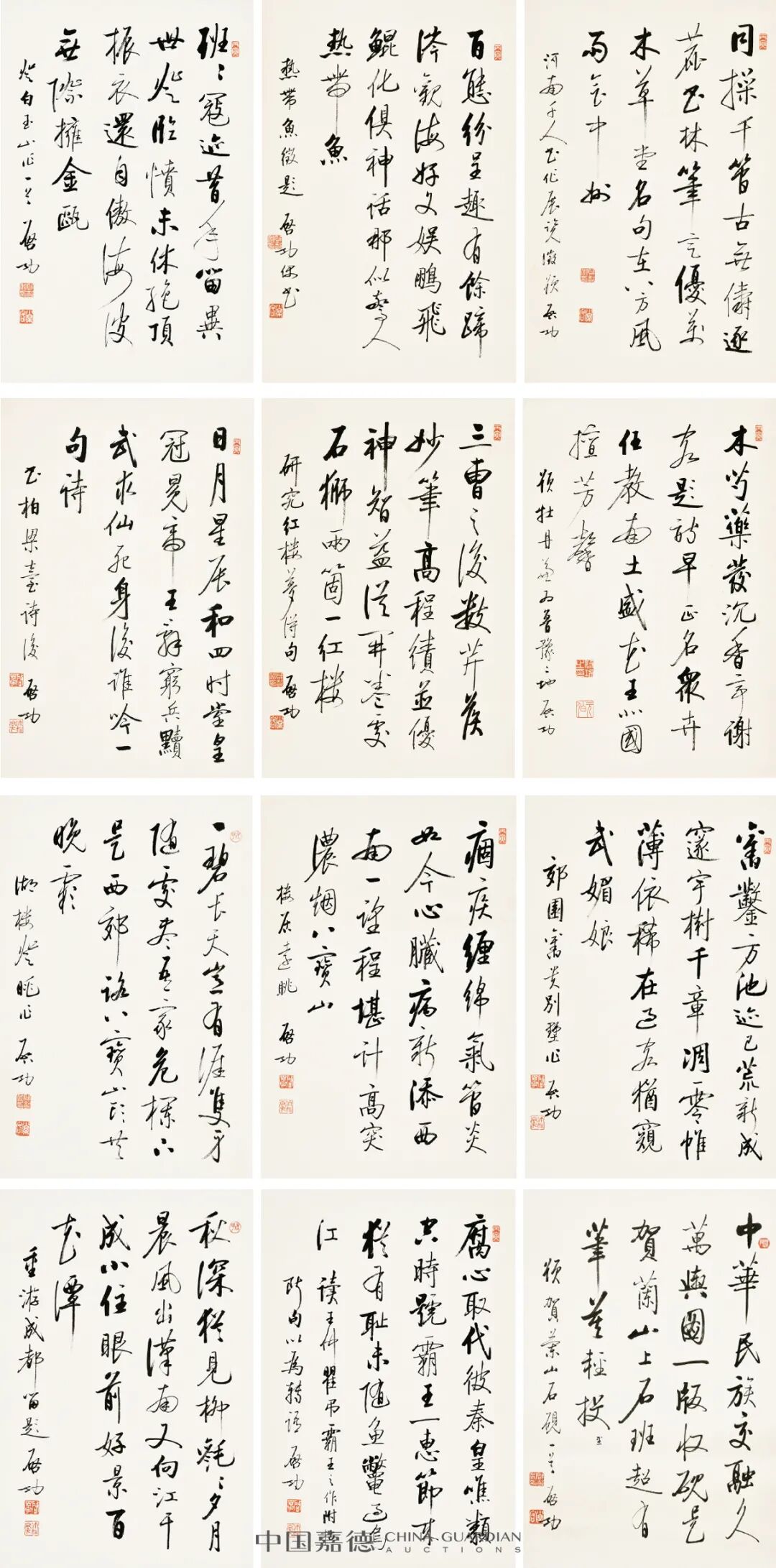 专场上启功先生难得一见的孤品尤为令人瞩目,也是买家竞逐的焦点。其中“自作诗十二屏”诗书双绝,是启功传世的唯一一套自作诗十二屏,以402.5万元的成交价领衔全场。长达九米的启功大字“临宋黄庭坚《青衣江题名卷》”以356.5万元成交。“启功 行书为梅峰光孝寺撰二十一言联”是迄今所见启功最长书法楹联,以287.5万元成交。气势恢宏的“古体诗十二屏”则以253万元成交。