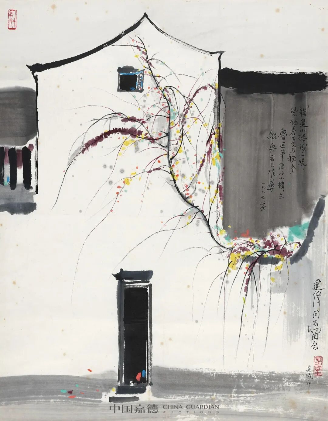 吴冠中风格鲜明的佳作《江南小楼》以563.5万元成交,领衔全场。齐白石《荷花》以189.75万元成交,为本场成交价第二名。黄宾虹《吴中小景》、刘海粟《白龙飞瀑》均以184万元成交,并列第三。