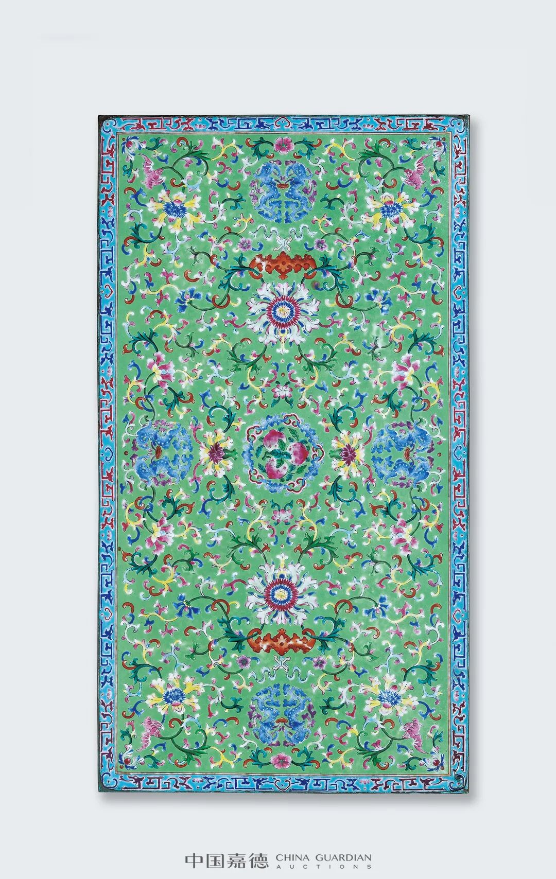 本品体量硕大,纹饰布局错落有致。富丽堂皇,绘画精细,一丝不苟,视觉上平衡匀称,设色大胆明艳,令人赞叹,布局繁缛而不失秩序,处处彰显乾隆彩瓷之华贵与堂皇,颇具清廷御用陈设之韵。
