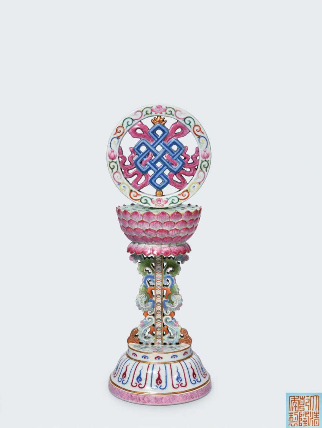 本品工艺繁复精湛,雕镂彩绘工艺兼备,彰显了乾隆御窑不俗的制作工艺。不失为一件乾隆御用礼佛瓷质供器佳作,极富皇家气质,值得关注。