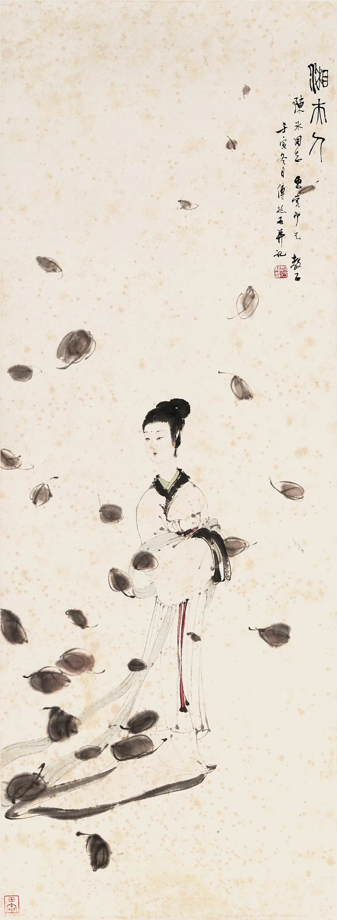 款识:湘夫人。陈冰同志惠赏即乞教正。壬寅冬月,傅抱石并记。