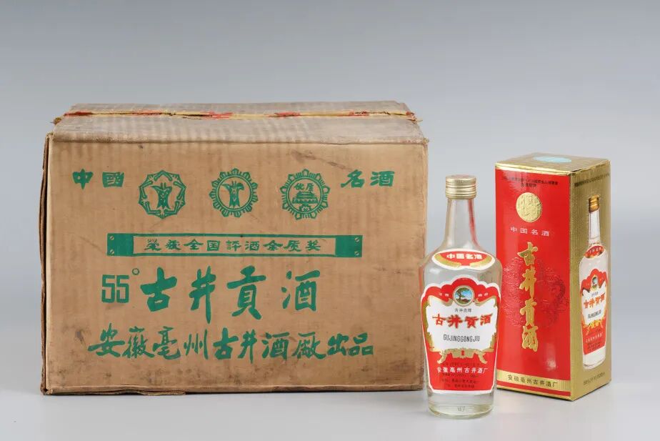 古井贡酒为中国八大名酒之一,古井贡酒属浓香型大曲酒,品质优秀。其酒液清澈如水晶,粘稠挂杯,酒味醇和,余香悠长,四次蝉联全国白酒评比金奖。原箱12瓶,保存完好。