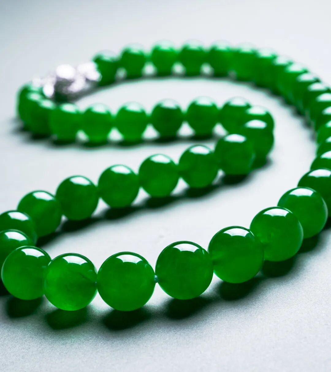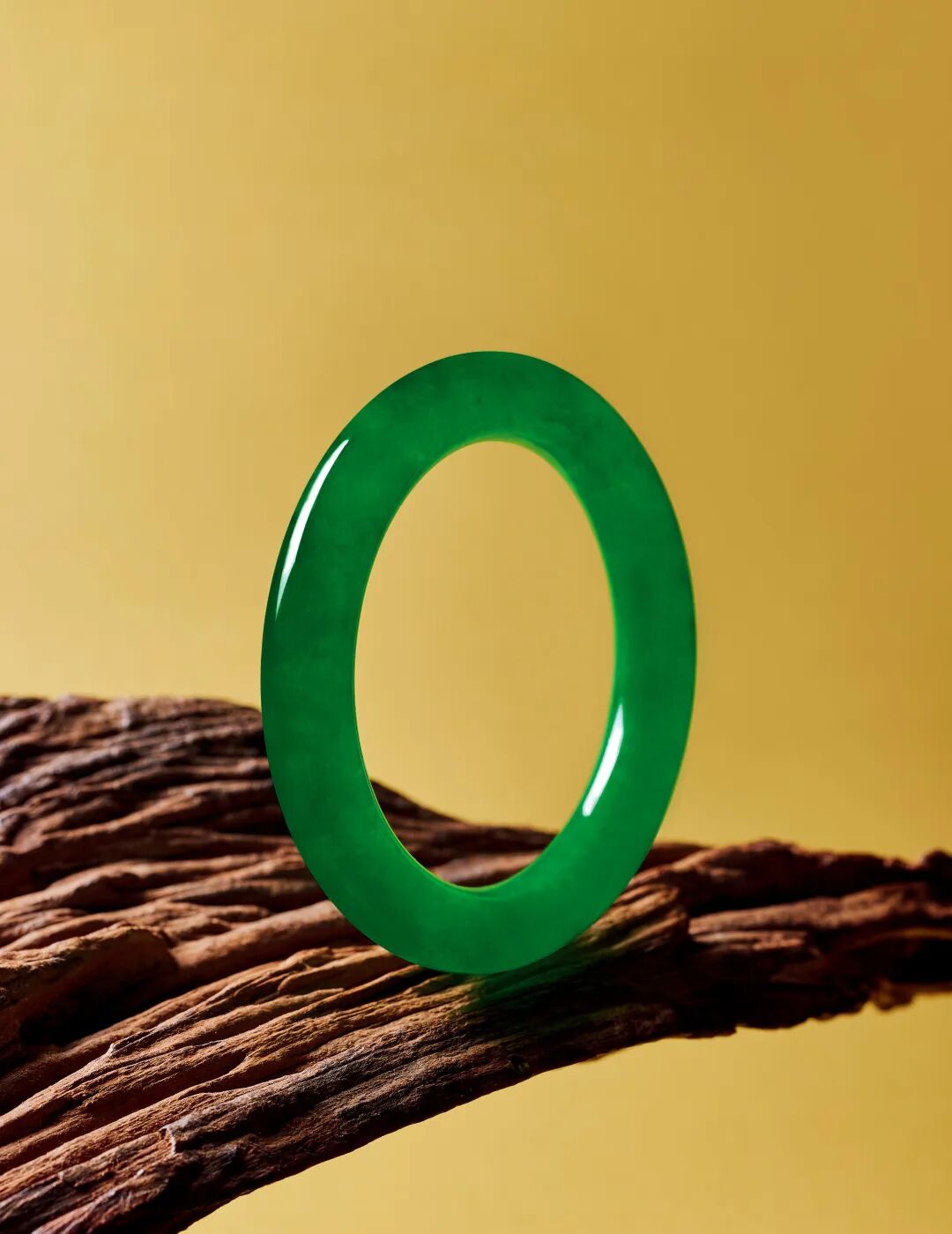 綠色為翡翠中最受歡迎的顏色,然而因翡翠為天然產物,能得到一整塊料子都是極品的綠色翡翠實屬困難。滿綠的翡翠手鐲在眾多翡翠飾品中也最為稀有,因爲需要整塊料子都是綠色的,才能切割出一隻手鐲。加上為了將翡翠料子切成條狀需要捨去許多上等的翡翠料子,所以相較於蛋面或是翡翠珠鏈,翡翠鐲子的數量更為稀少。