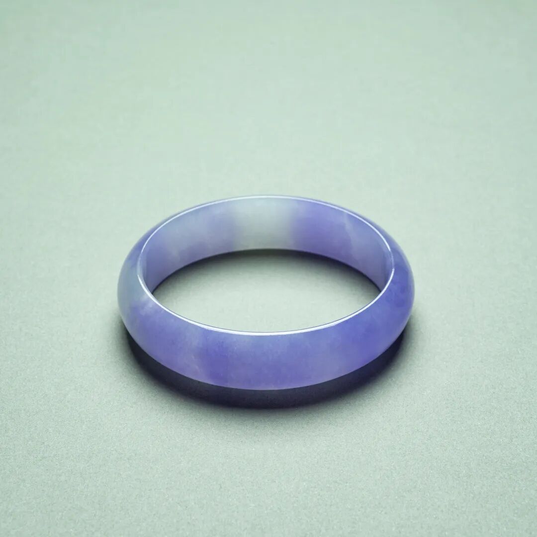 此件拍品是一條滿綠圓條的緬甸天然翡翠手鐲。前面有提到滿綠翡翠手鐲的稀有度,而圓條的手鐲因為需要耗費的材料更多,所以是其中更稀少的。此件拍品有著溫潤的色澤、圓潤的條型,高貴無比,是許多收藏家夢寐以求的極品翡翠手鐲。