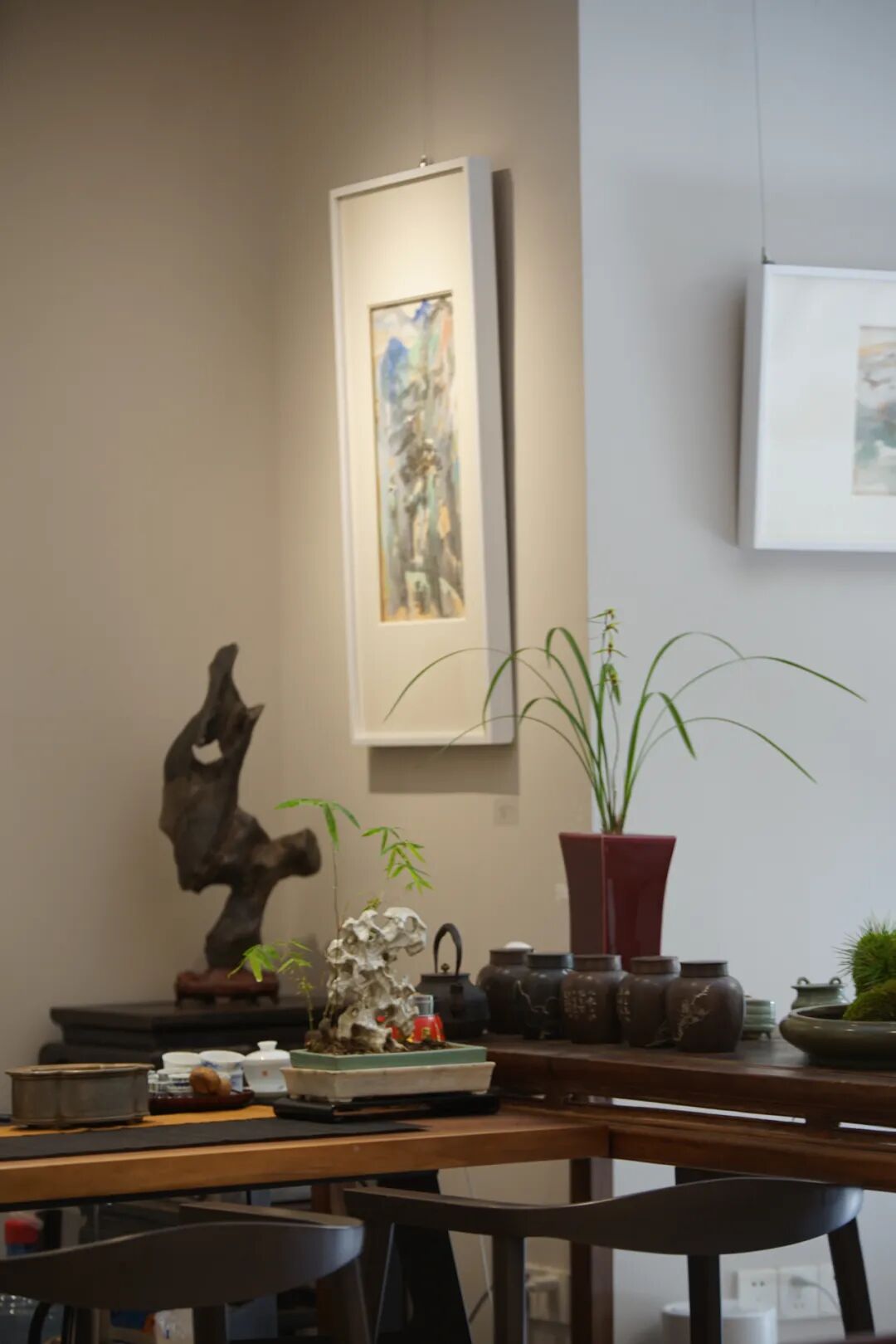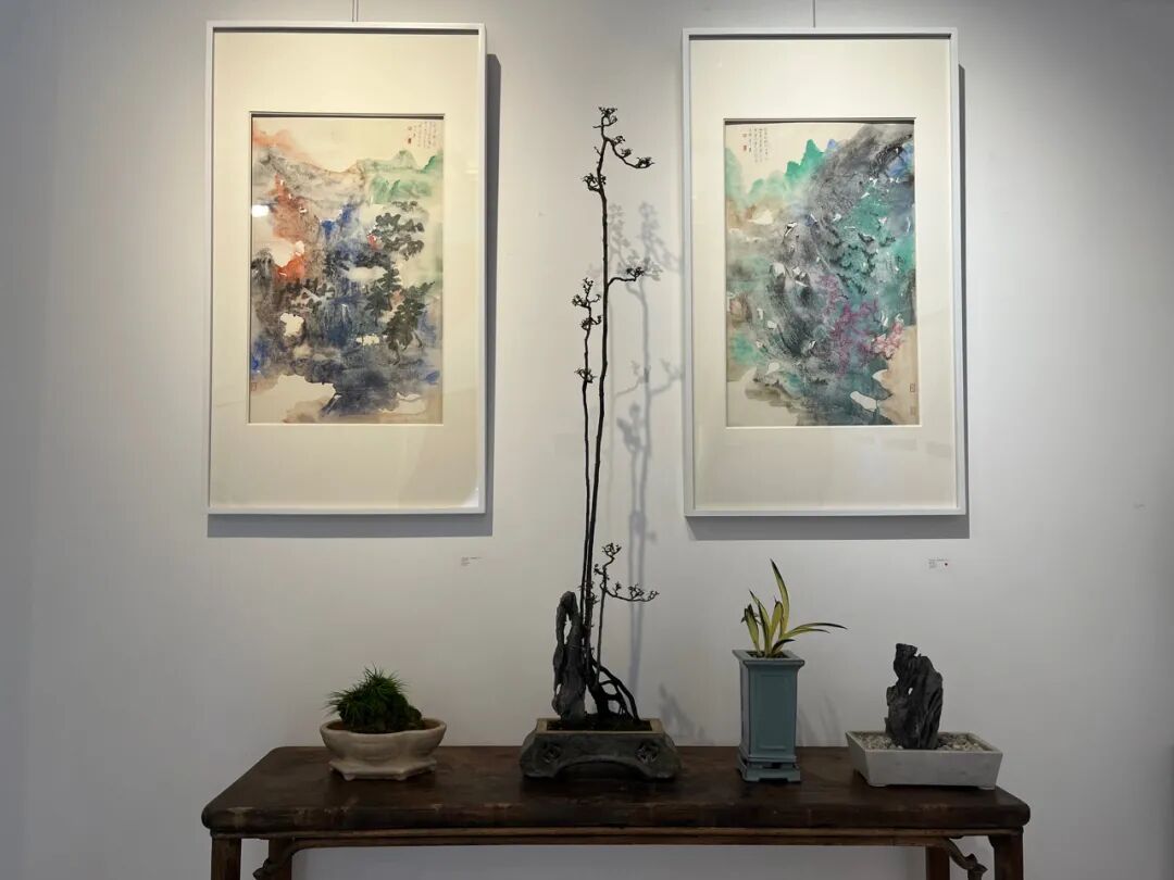 出席开幕式的还有许俊华先生多年的好友,广东崇正拍卖总经理许习文先生,他在致辞中说:“我其实一直在思考如何将许俊华老师的作品进行一个归类,但是我无法得到一个确切的答案,我更愿意说他是一个传统型的画家,还是一个比较通才的画家,在山水、花卉、花鸟,虫鱼等各种题材都非常了得。就算他运用了传统的题材,他的创作方式还是很新颖,和真土堂这个空间相得益彰。许老师酷爱国画,也喜欢玩些古玩,我觉得他这种童心也得益于他对传统的深入研究和渗透,作画的手感韵味十足。”