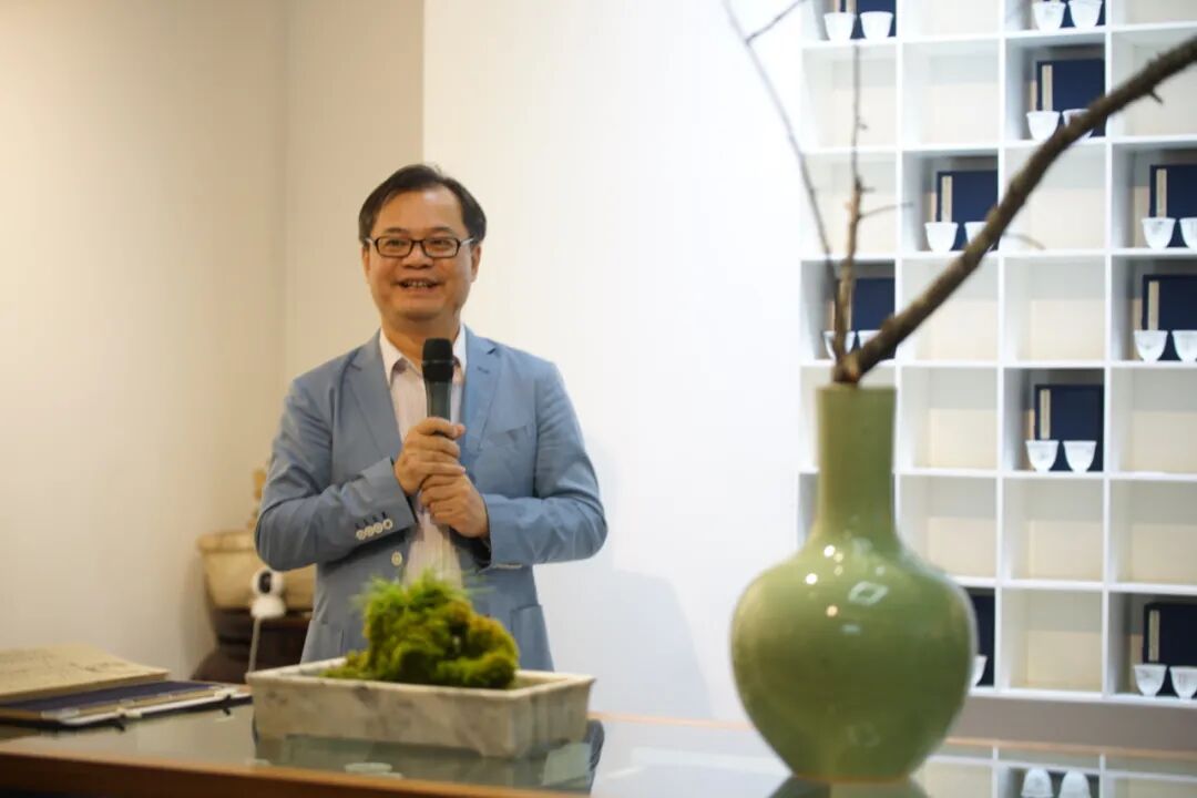此次展览策划方、真土堂堂主邬宛廷女士在发言中交代了展览从碰撞、酝酿到这一年的筹备经过:“三年前因缘巧合,我和许俊华老师拜读了冯学成老师写的《中峰和尚大师传》,并得到冯老师的指导。遥望天目山,如望精神的故乡。于是相邀许俊华老师做一个关于中峰明本禅师梅花百咏诗意为主题的画展,聊解慕道饥渴。因为疫情原因,展期一直延后,相信一切都是最好的安排。展览有三年时间的筹备,今天,许俊华老师给我们带来了一场极具禅意的展览。许俊华老师作为书画鉴定家,书法家,画家,在新时代,用他的笔创造出禅的内心世界,在中峰禅师的内引下,参透梅花诗意。一花一世界,一画一菩提,‘放一大光明’去照亮自己,照亮人心……。”