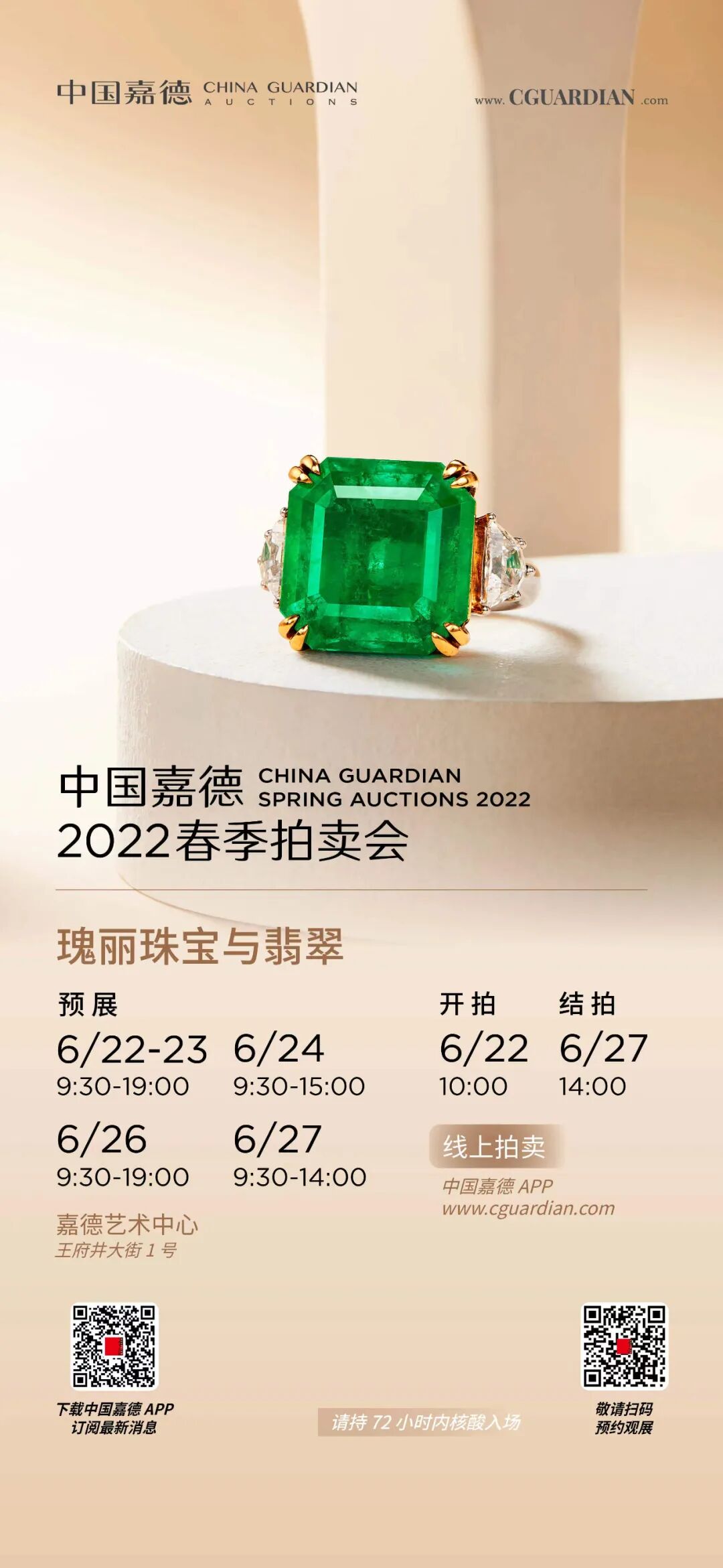 中国嘉德春拍「瑰丽珠宝与翡翠专场」线下预展将继续在嘉德艺术中心二层展出,藏家可亲临现场鉴赏试戴。