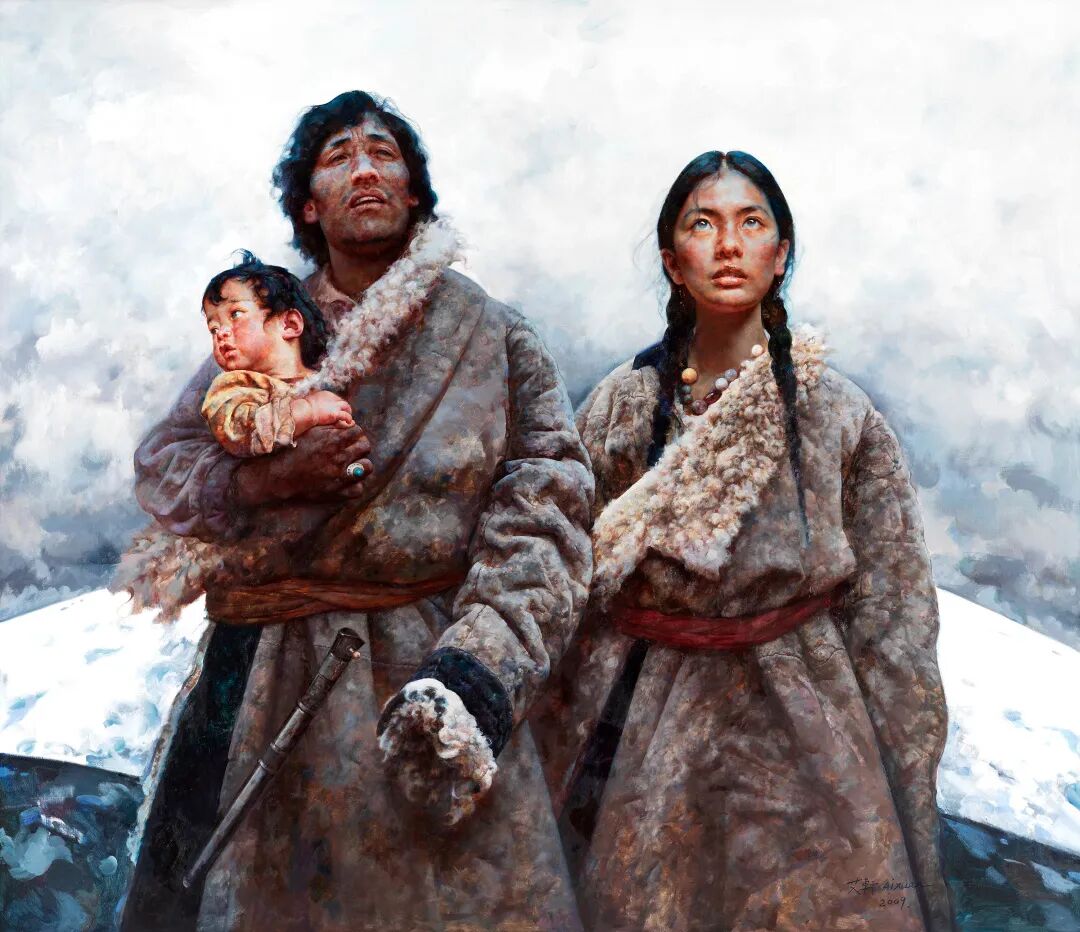 “那是离天最近的地方,有神山圣水,民风淳朴,是一块净土,有一种回归自然的感觉。”这是陈逸飞对西藏的第一印象,藏不住的热爱和向往,在他看来粗犷、神秘的藏族是最入画的民族,人的皮肤、线条、服饰都具有强烈的个性和美感,而西藏题材的人物群像作品则是陈逸飞先生有别于以往的全新力作。成为他回国以后除“海上旧梦”系列之外,最重要的创作题材。其中西藏组画《山地风》更是早在上世纪九十年代初的拍卖市场中,就创造了当年华人油画拍卖最高价。