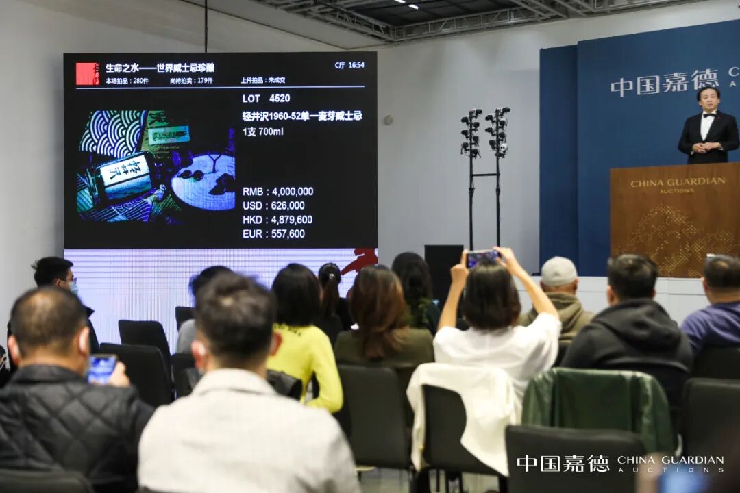 “生命之水——世界威士忌珍酿”专场精心甄选了280件市面罕有的威士忌佳酿,涵盖威士忌多产区、大酒厂、高年份、稀少原箱拍品,为威士忌板块历史上数量及金额最高的场次。拍品丰富多元,适宜品鉴投资或收藏,全场成交率86.79%,总成交1846.9万元,刷新轻井沢单瓶世界拍卖纪录及国内威士忌单瓶最高纪录。