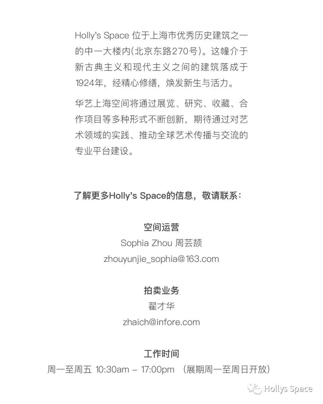 Holly's Space于6月20日(周一)起重新开放,现根据疫情防控政策空间展览仅限邀约观展,后续观展模式将根据上海疫情防控形势变化调整。