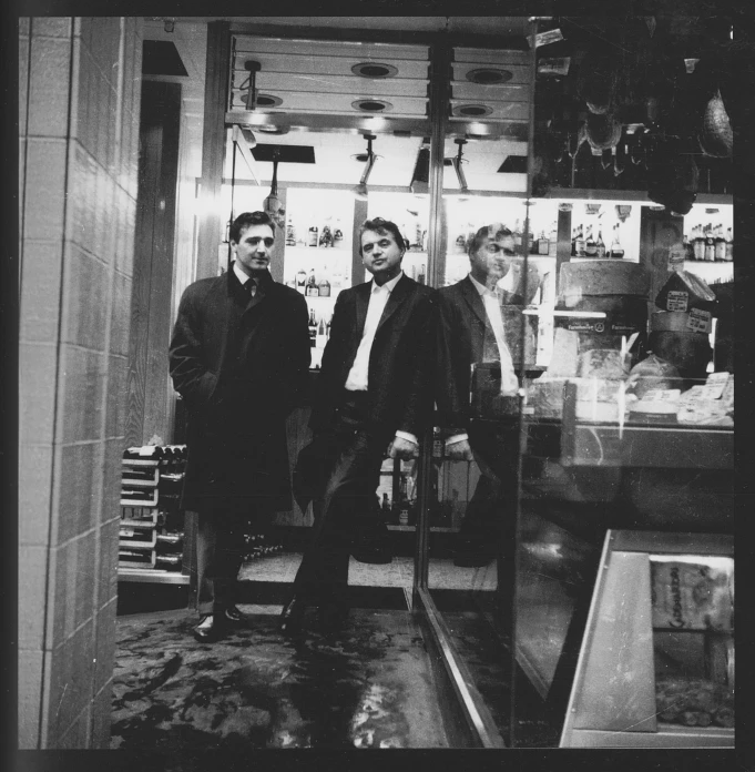 卢西安弗洛伊德与身后的弗朗西斯培根画作《两人》(1953年作)。图片来源: DAVID DAWSON。版权所有 2022 / BRIDGEMAN IMAGES