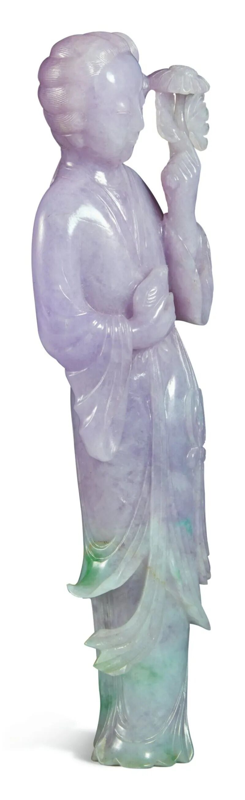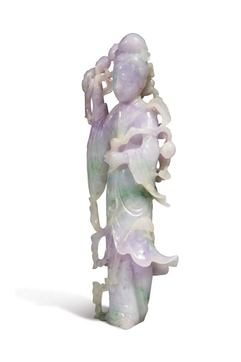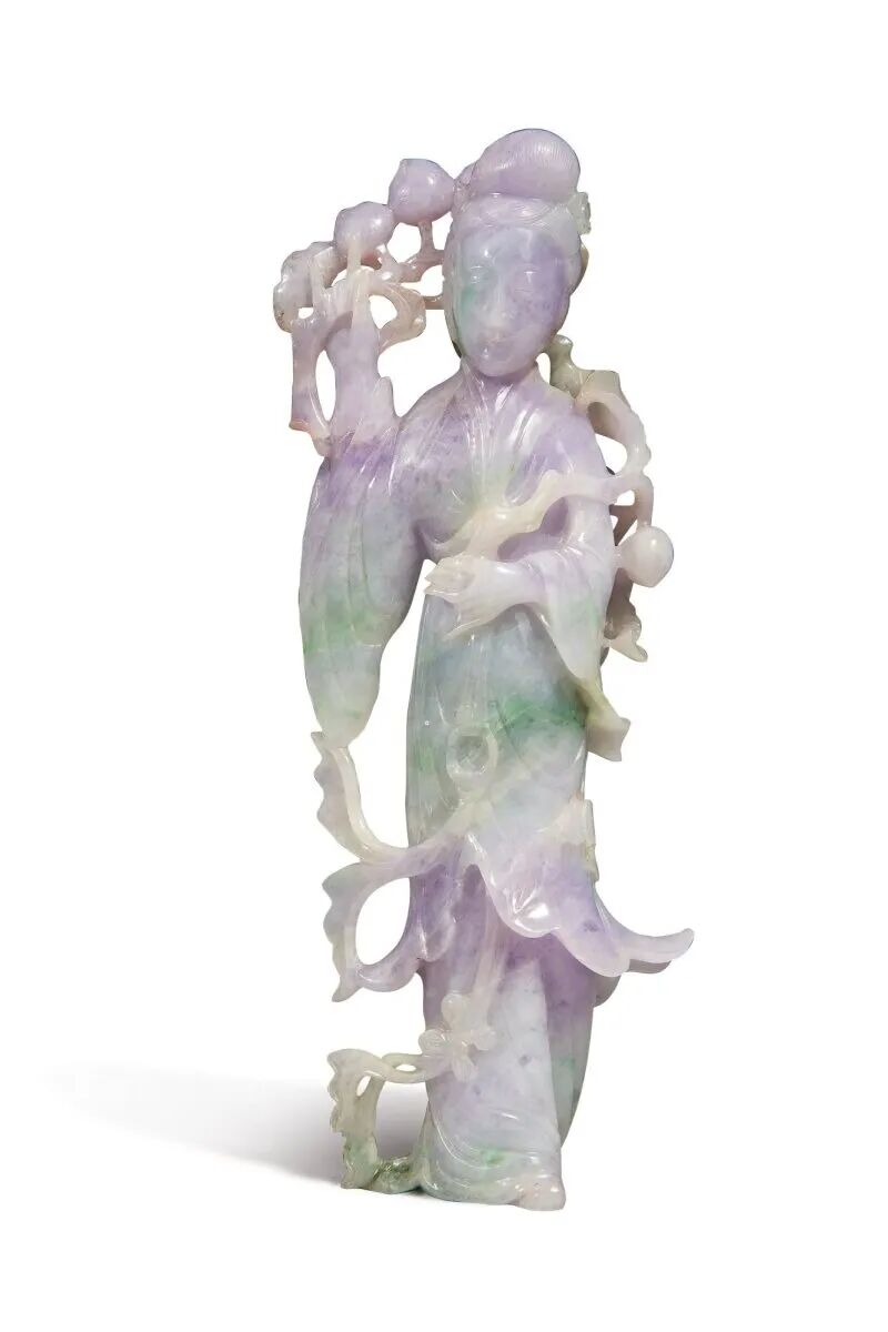 来源:John Taylor Johnston(1820-1893 年)收藏,他是纽约大都会艺术博物馆的首任馆长。此拍品由其后人继承。1.Len Botowksi 收藏,约1985年购于迈阿密2.纽约苏富比,2014年9月16日,编号 573Lot 109 清末 / 二十世纪初 翡翠雕美人立像来源:Allen O. Battle 博士 (1927-2020) 收藏。