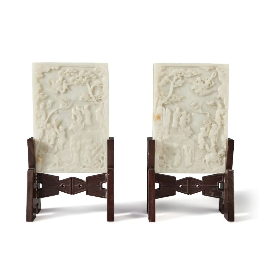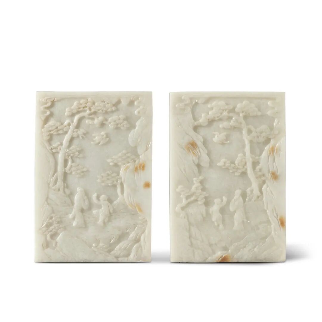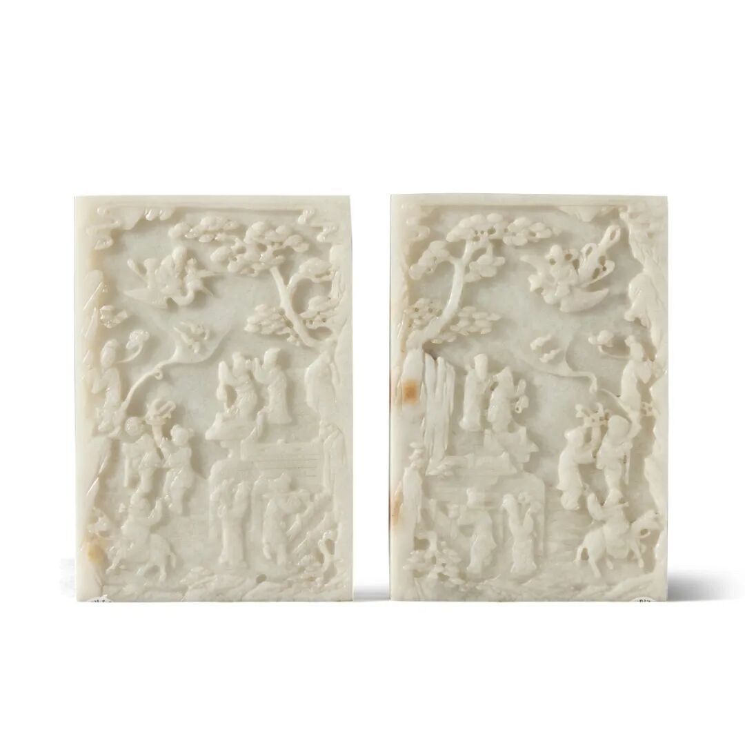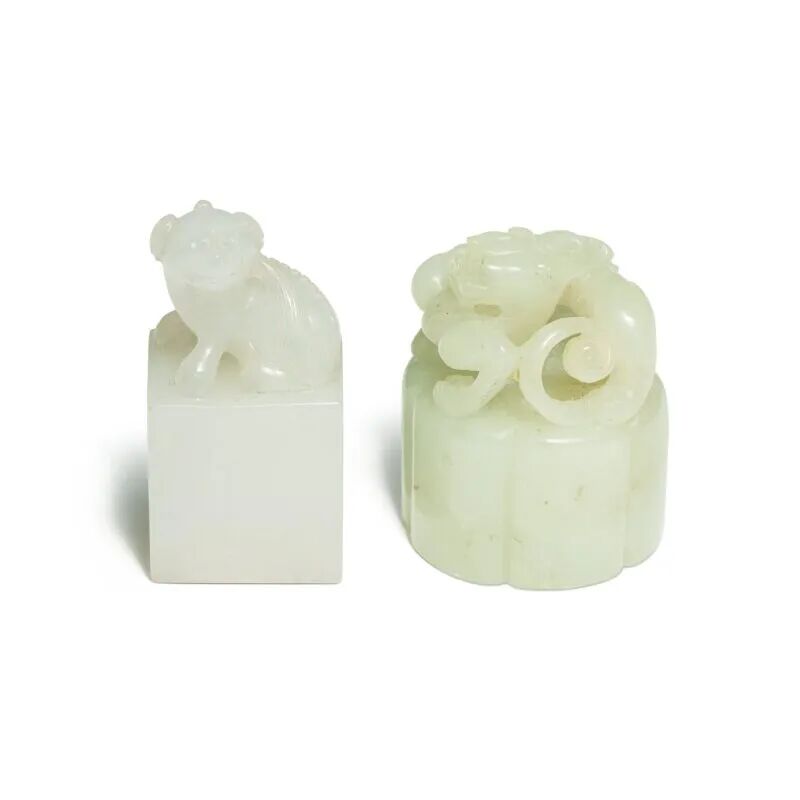 来源:纽约苏富比,2015年3月21日,编号672来源:纽约佳士得,2015年9月17日,编号2354。Lot 101 清末 / 民国 白玉雕群仙贺寿图砚屏一对来源:香港苏富比,2015年12月3日,编号390。说明:盒盖内附冯先铭(1921-1993)辛未年(1991年)题识Lot 107 清末 / 二十世纪初 翡翠雕美人立像5.Allen O. Battle 博士 (1927-2020) 收藏Lot 60 清十八 / 十九世纪 玉雕瑞兽钮印一组两件1.Sydney L. Moss,伦敦,1985年2.加利福尼亚州 Elly Nordskog 收藏3.伦敦佳士得,2012年5月14日,编号106。1.Frank Crane,The Hundred Antiques,多伦多,1970年代。1.Henry Bar 收藏,上海,约1940年代。2.Oriental Fine Arts inc.,纽约,1950年代。4.纽约苏富比,2015年3月17日,编号279。来源:纽约苏富比,2015年3月17日至18日,编号 268。