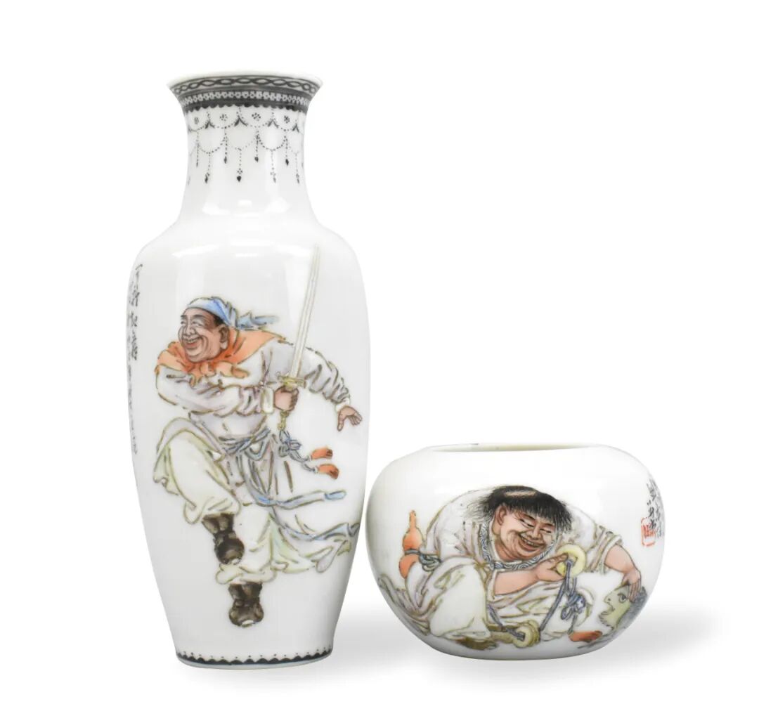 来源:马里兰州私人藏家收藏,购自伦敦 Roger Keverne尺寸:D 27 cm, W 17.8 cm, H 10.1 cm来源:Dr, Frank Gabrin 收藏,东奥兰治,新泽西州,由后人继承来源:纽约 Leon & Debbie Black 收藏,售出于 Doyle 拍卖会来源:Harry A. Eberhardt & Son Inc 收藏,菲拉,宾夕法尼亚州来源:Frank Gabrin 收藏,东奥兰治,新泽西Lot 218 十九世纪 五彩人物故事纹棒槌瓶一对来源:纽约 Leon & Debbie Black 收藏,由后人继承来源:Frank Gabrin 收藏,东奥兰治,新泽西