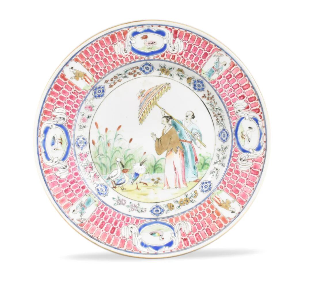 来源:Daniel Wilson 收藏,维也纳,弗吉尼亚州来源:Morton 和 Barbara Mandel 收藏,由后人继承来源:Morton 和 Barbara Mandel 收藏,由后人继承来源:Dr, Frank Gabrin 收藏,东奥兰治,新泽西州,由后人继承来源:J.Louis Binder 收藏。其外销瓷收藏可以说是近几十年来最广泛且最令人兴奋的系列,当中有非常多精美且罕见的藏品。佳士得伦敦也曾于2003年为 J.Louis Binder 的中国外销瓷收藏举办专场拍卖会。来源:纽约内科医师 Silvio Riccio 博士的遗产,于1989年2月9日以1500美元的价格从康涅狄格州达里恩的 Windsor Antiques Ltd 购得,随附原始收据。Lot 49 清雍正 外胭脂红地内粉彩人物故事纹盘来源:纽约内科医师 Silvio Riccio 博士的遗产,于2014年6月20日从新泽西州普林斯顿的 Lawrence Antique Gallery 购得,价格为6,450美元,随附原始收据来源:纽约内科医师 Silvio Riccio 博士的遗产,于2010年9月23日从纽约的 Imperial oriental art 购得,价格为15,000美元,随附原始收据来源:佳士得香港,2016年10月4日,“古今 | 佳士得”,拍品编号 165来源:Bernard Mannes Baruch (1870-1965) 收藏,纽约
