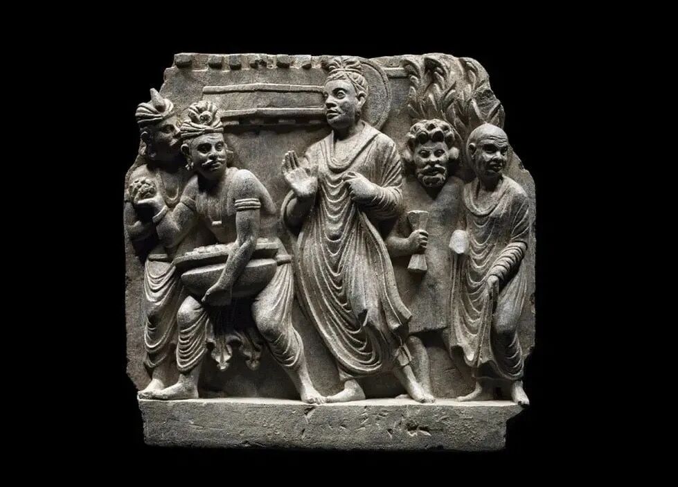 犍陀罗 约二世纪 片岩佛陀入王舍城图石碑