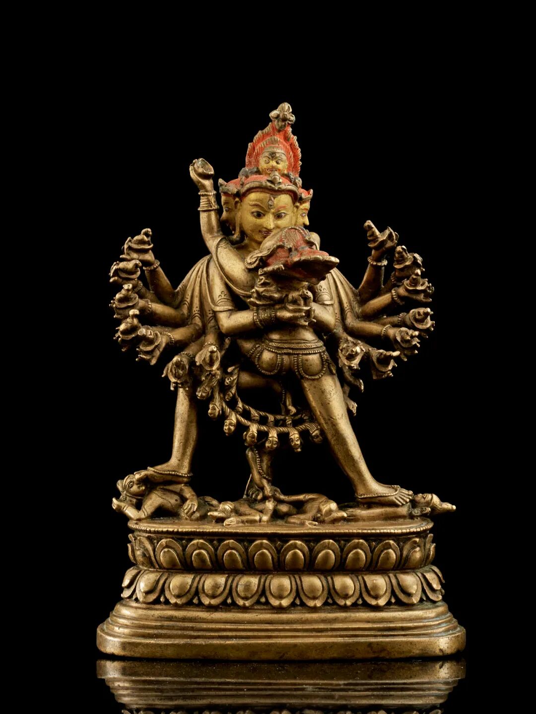 铜鎏金莲花生大士与曼达拉娃及益西措嘉像