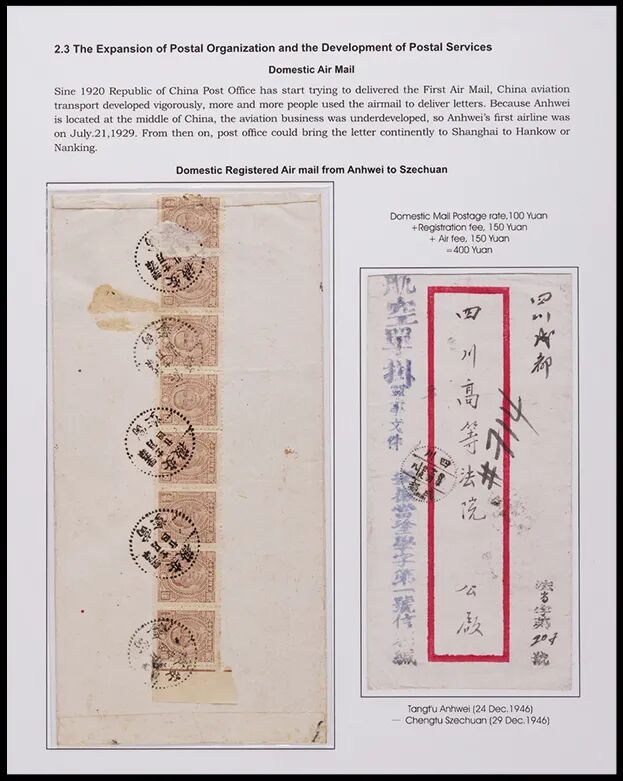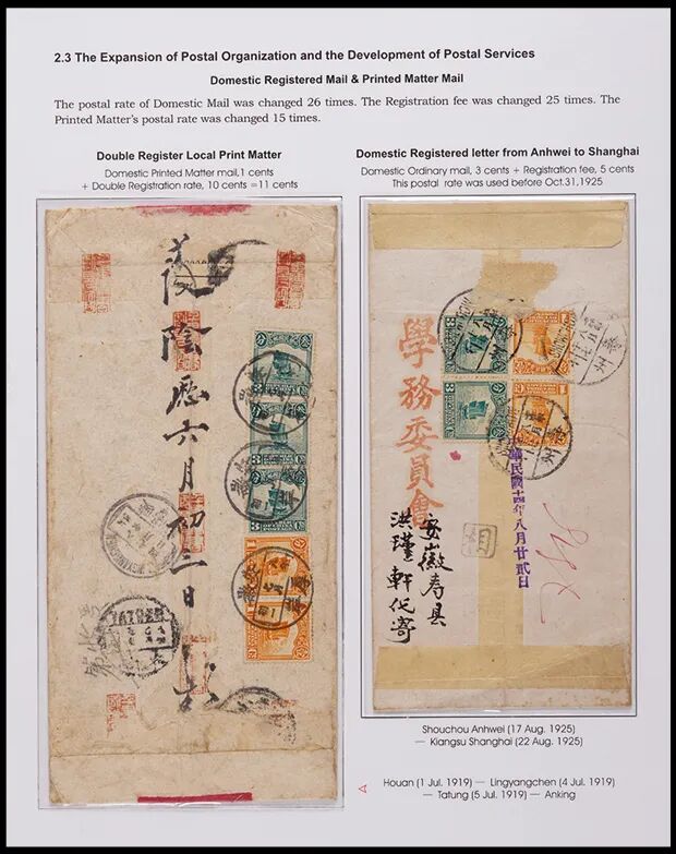 《安徽邮政史1897-1949》五框邮集一部,获武汉2019年世界邮展大镀金奖,此部邮集透过信封完整了展示了从清代、民国至解放区安徽省相关之邮路、邮资、邮戳之变化。