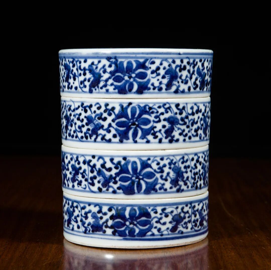 清乾隆 青花皮球花四节盒