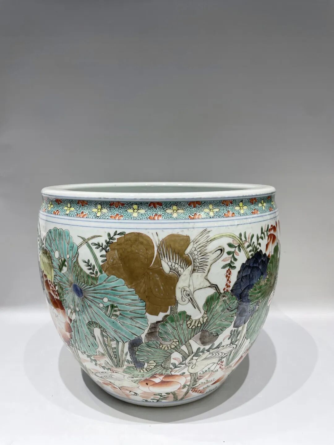 清 粉彩鹭鸶荷塘小案缸