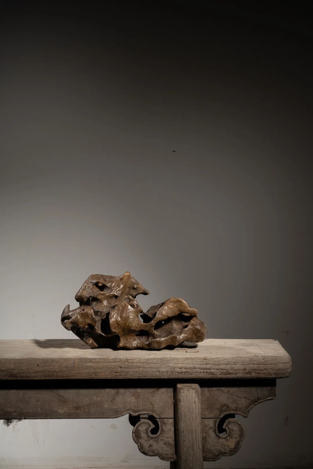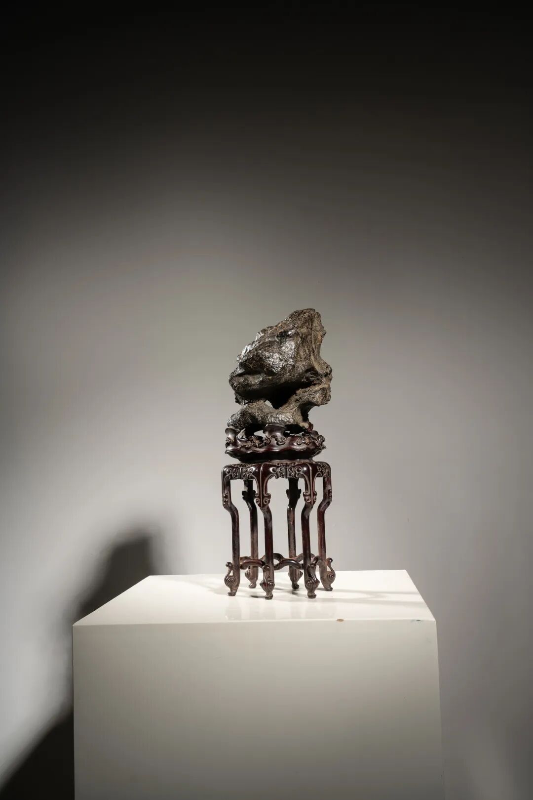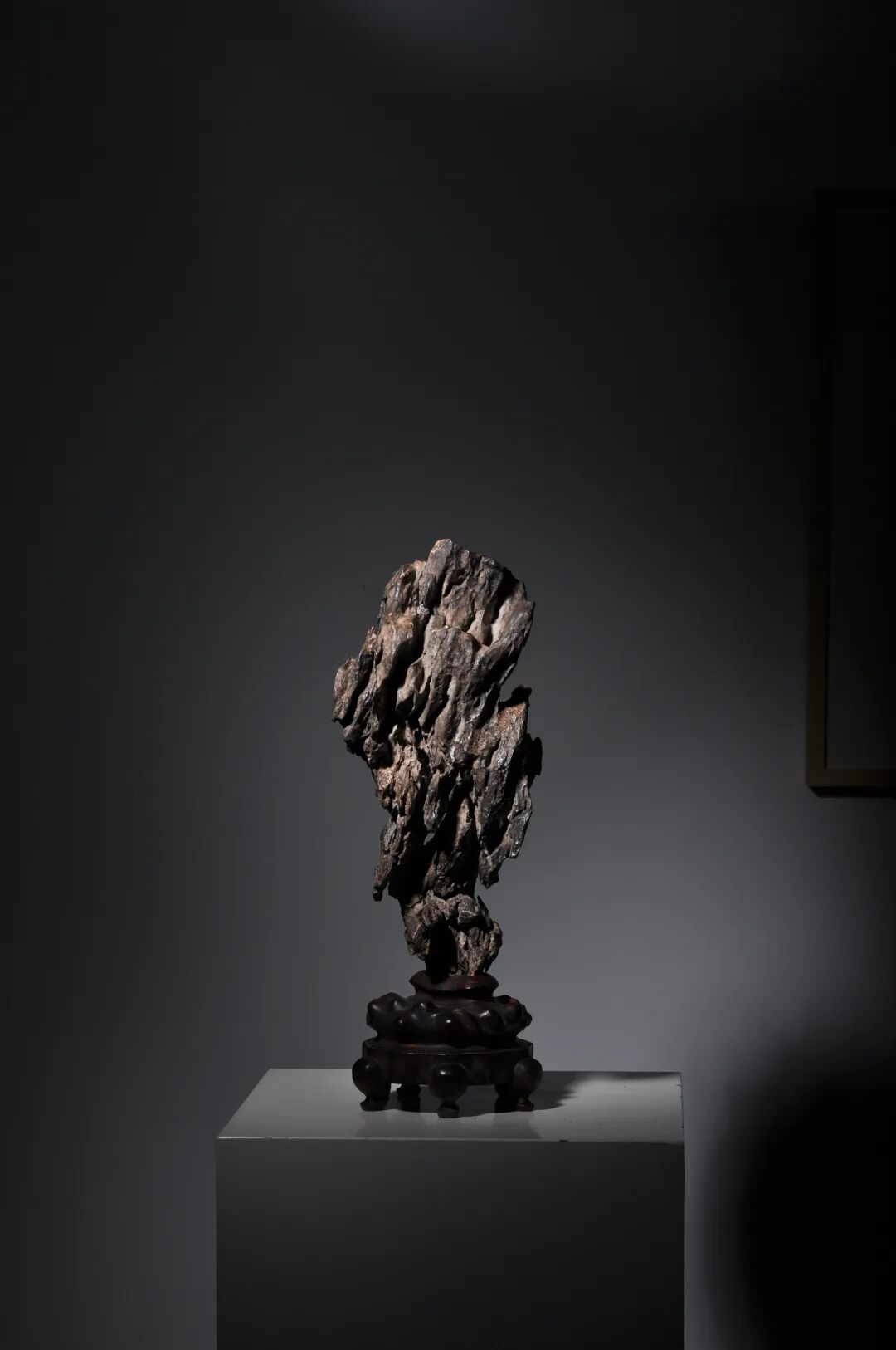 清 “嶙峋幽骨”英石 高52cm(连木拖)