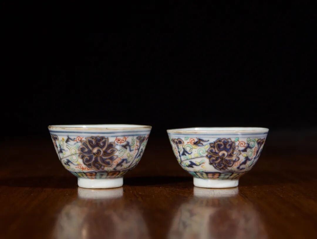 清光绪 斗彩描金缠枝花卉茶园(一对)