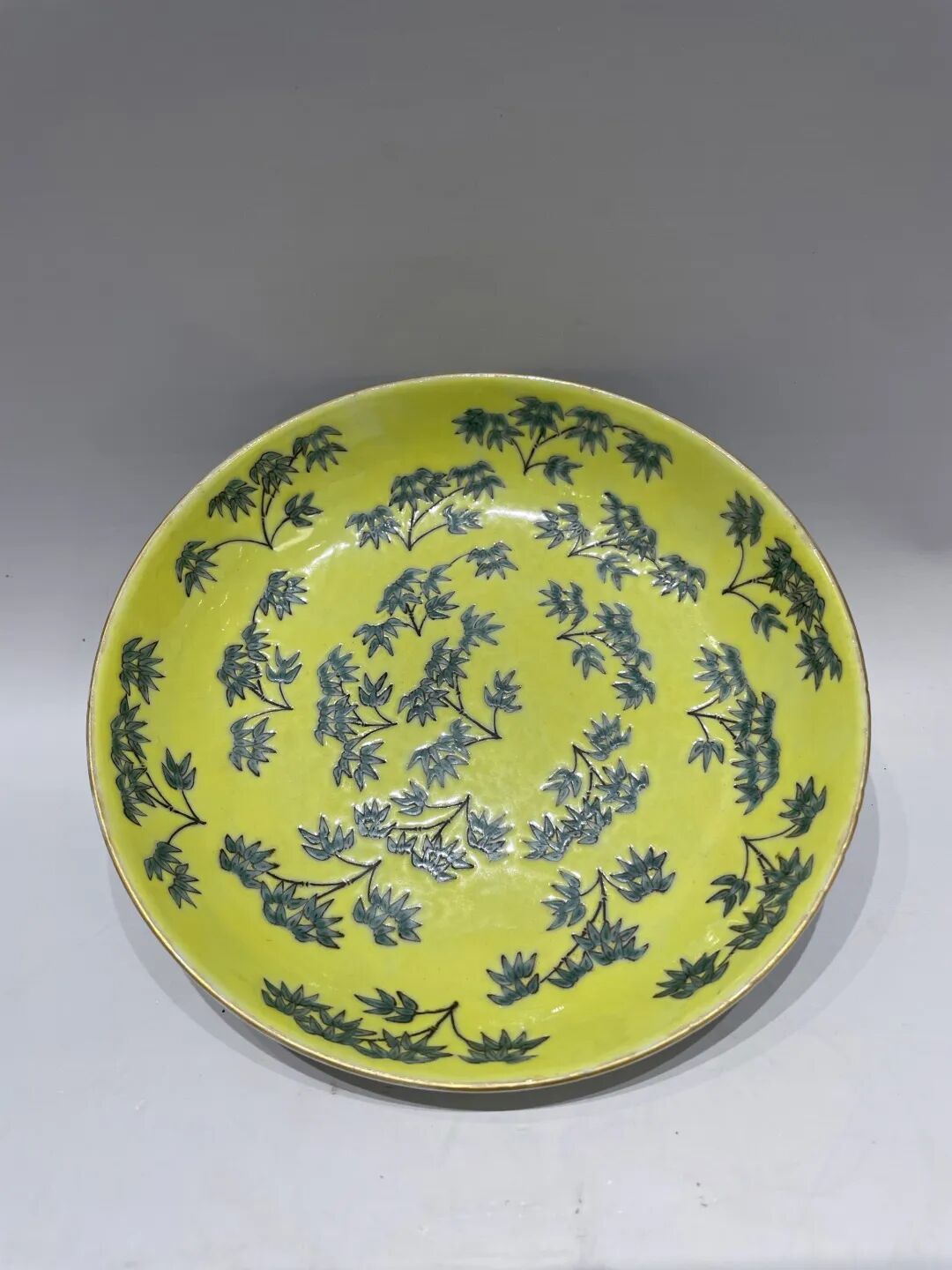 民国 黄地竹纹盘