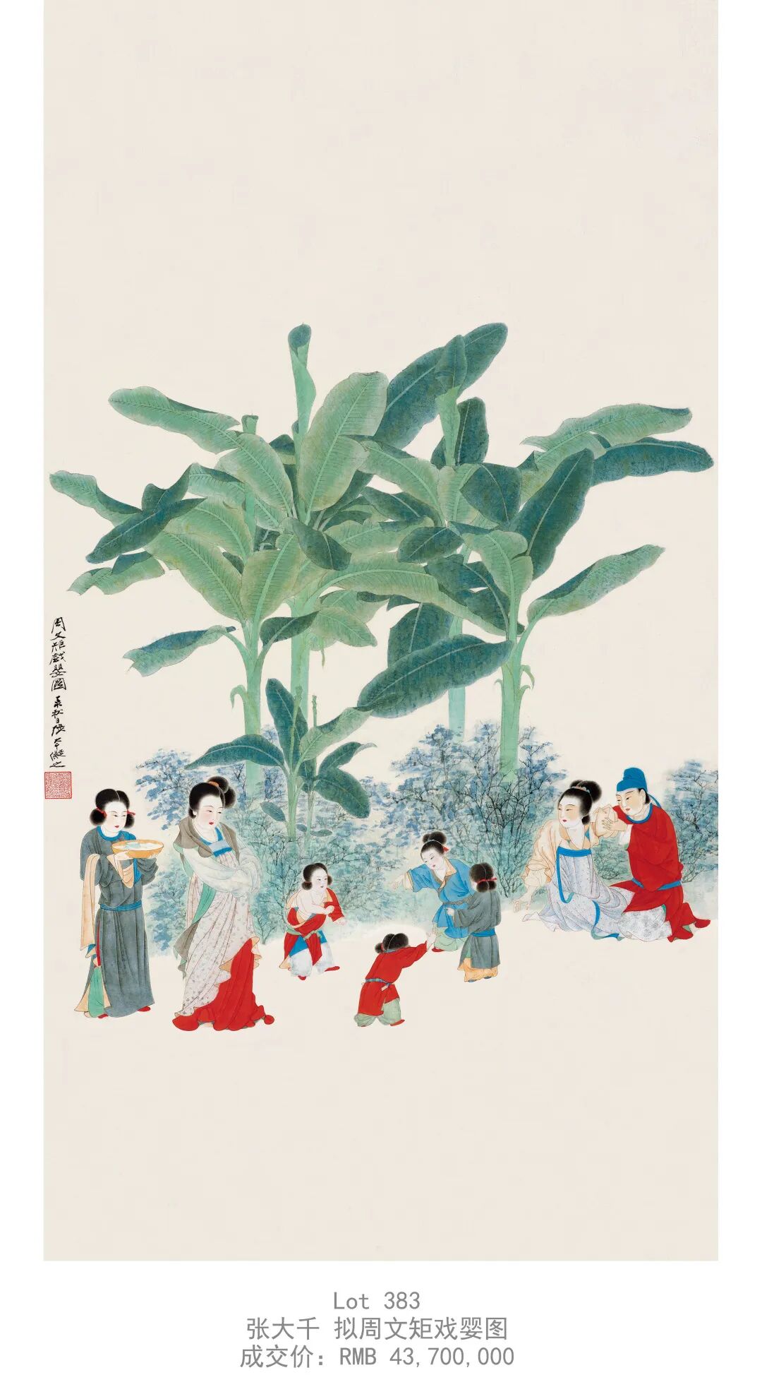 大观之夜显示出市场对高端艺术品的需求依然存在,藏家对来源考证和价格拿捏都益显专业谨慎。近现代板块由于受众广泛、交易充分而展现出稳健的韧性,老藏家强势回归,新买家笃定自如,齐白石《嘉耦图》张大千《婴戏图》均顺利易手;而充满人文情怀的梁启超书卷和齐白石《题画诗册》因其独特稀罕的内容引发买家激烈角逐。古代部分通过充分的钩沉、检索,挖掘拍品深层次的艺术、文献价值和背后的故事,使得董其昌、李日华、蔡羽、陆治、文点、戴苍等五大手卷均顺利归与新的藏家,其中每一个让人振奋的新发现,都是古代书画牵动人心的一部分。在如许不确定的特别背景下,总额3.8亿的成交,依然显示了中国书画深厚广泛的市场感染力。