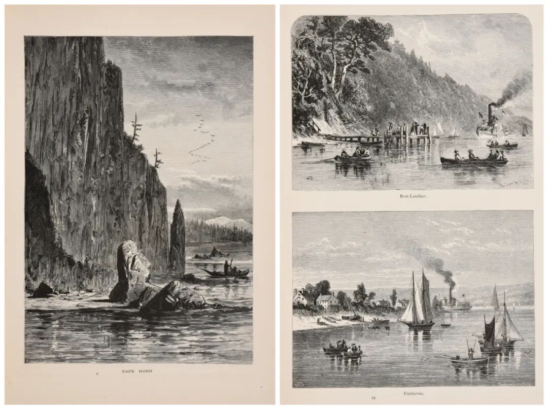 提要:是书1872-1874年纽约D.Appleton and Company出版,内含50幅精美钢刻版画与900幅木刻版画,呈现出了美国境内山川、河流、城市等迷人风光。此书也涵盖名家散文,被认为对美国旅游业的发展和历史遗址与自然景区的保护运动产生了深远的影响。是书豪华摩洛哥皮轧花烫金装帧,书页三面刷金,保持原始装帧状态。
