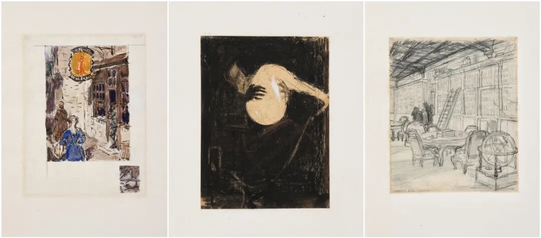 提要:是书1911年于法国出版,内含稿本64页图纸组成,包括71幅原始构图或草图原稿,一些原稿上有签名,主要是为20世纪初期法国著名小说《佩多克女王》设计的插图。奥古斯都勒鲁(1877-1957)为法国著名画家,因其在美术上的贡献获封法国骑士,作品在法国博览会获奖并担任法国国家艺术委员会评委,风格为象征主义和新艺术流派,其作品在现在的国际市场仍受追捧。蓝色摩洛哥皮,封面内侧有精彩的手工彩色拼皮环饰,该手稿集为法国知名藏书家提供。