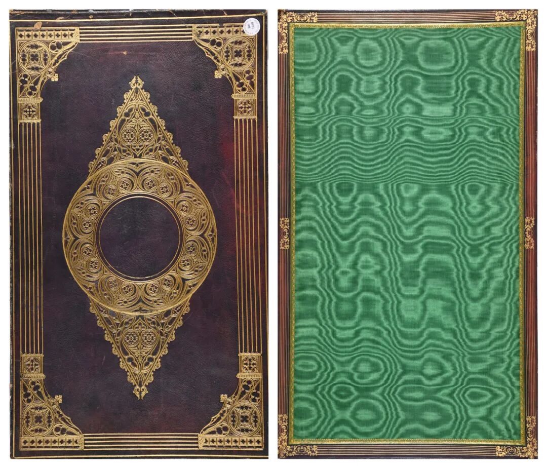 提要:是书是1845年于伦敦Longman,Brown,Green,Longmans出版,由著名书籍装帧工坊Riviere and Sons制作的早期经典作品,书内配饰大量名家插图,红色真皮手工装帧,采用满幅复杂烫金图案,有装帧工坊烫金签名。